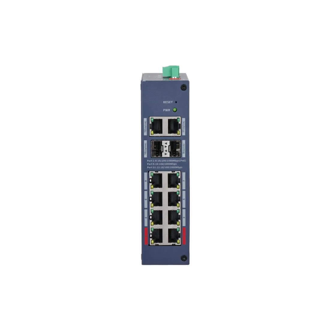Коммутатор, Dahua, DH-CHS4212-8GT-110, Индустриальный, Управляемый L2, 8 портов 10/100/1000T PoE (802.3af/at/bt 120W), 2 порта SFP 1000M (uplink), 2 порта 10/100/1000 Mbps (uplink)