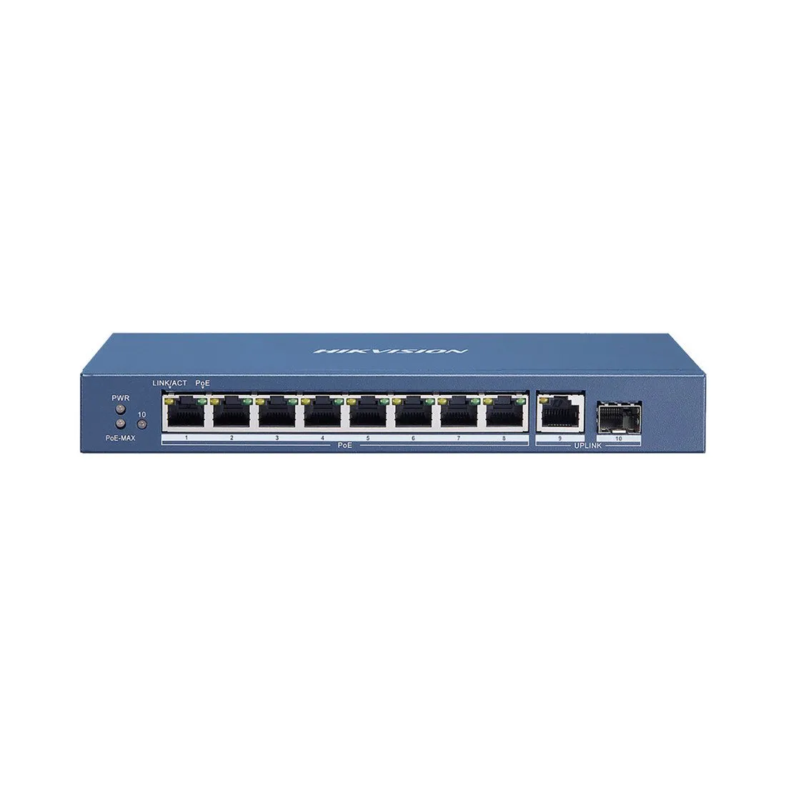 • Порты: 8 × гигабитных PoE-порта, 1 × гигабитный RJ45, 1 × гигабитный оптический порт (SFP)
