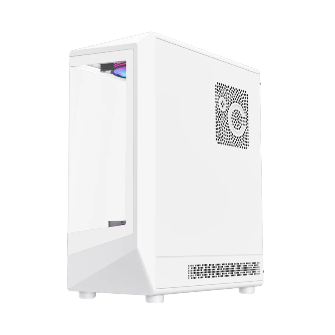 Современный корпус форм‑фактора Middle Tower, сочетает стильный белый дизайн с продуманной функциональностью для игровых и рабочих ПК. Светлое исполнение корпуса подчёркивает аккуратный внешний вид сборки и выгодно выделяет компоненты, особенно с подсветкой, создавая эффектную визуальную композицию.