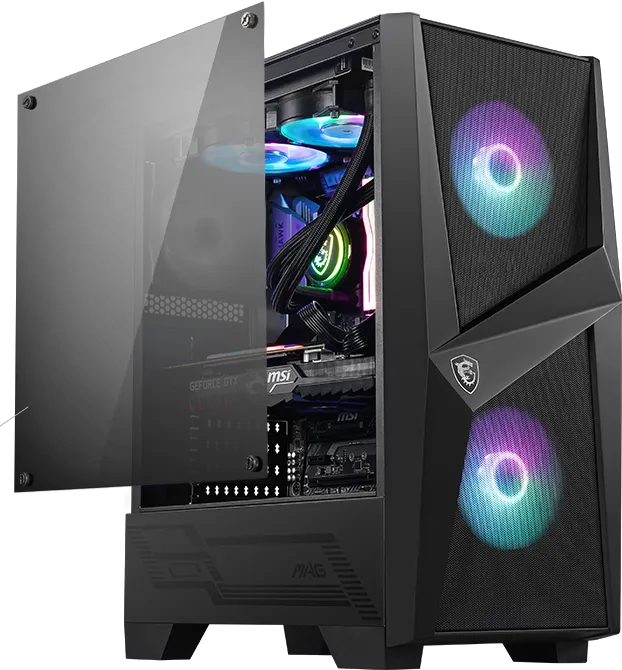 Высокопроизводительный MID-TOWER корпус с боковой панелью из закалённого стекла позволяет рассмотреть все компоненты системы. Благодаря уникальному дизайну светодиодной ARGB-подсветки передней панели, корпус выглядит очень стильно. Поддерживает жидкостное охлаждение в передней, верхней и задней части корпуса чем обеспечивается большая эффективность отвода тепла. 2 предустановленных 120 мм ARGB-вентилятора на верхней панели и 1 предустановленный 120 мм ARGB-вентилятор на задней панели корпуса.
