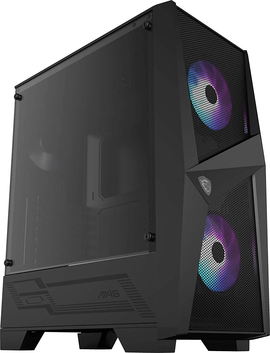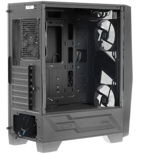 В комплект корпуса входит вентилятор, оснащенный адресуемой полноцветной ARGB подсветкой с поддержкой системы Mystic Light. В корпусе имеются посадочные места для 7 системных вентиляторов, а также для 240мм вентилятора на верхней панели и 280мм у передней панели и возможна совместимость с системой водяного охлаждения. Пылевой фильтр на верхней панели корпуса оснащен магнитным креплением, которое позволяет легко снимать его для чистки.