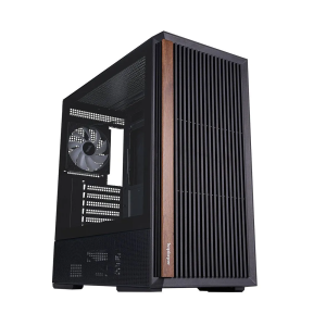 Корпус предлагает продуманную вентиляцию и поддержку эффективной циркуляции воздуха, что особенно важно при использовании высокопроизводительных процессоров и видеокарт. Пространство внутри корпуса рассчитано на установку стандартных компонентов: длинных видеокарт, высоких процессорных кулеров и радиаторов систем жидкостного охлаждения. Отсутствие блока питания даёт свободу выбора оптимального решения под конкретную конфигурацию, а также облегчает первоначальную сборку.