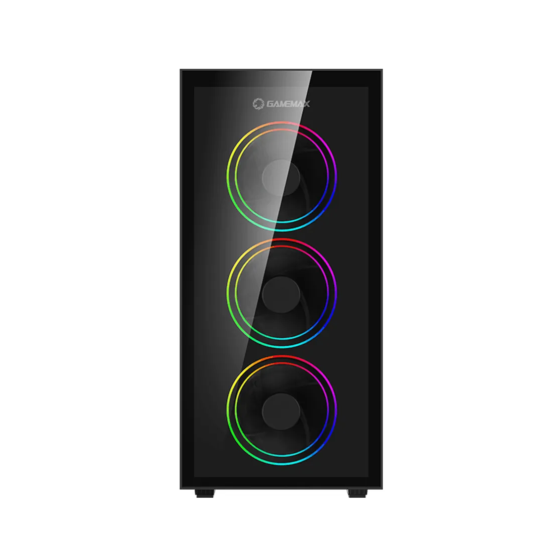 На передней панели предустановлен двухкольцевой вентилятор размером 4x120 мм с режимом подсветки ARGB, управляемым через встроенный концентратор, он обеспечивает большой поток воздуха и превосходный эффект, а светодиодная лента spectrum, встроенная в корпус, обеспечивает идеальный баланс между стилем и RGB.