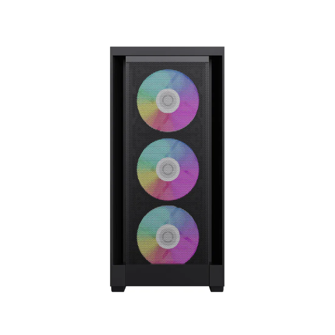 С 1 закалённой стеклянной панелью, верхняя панель поддерживает установку СЖО с радиатором до 360 мм. Предустановлены 4 ARGB-вентилятора. Фронтальная панель выполнена из полностью металлической сетки для максимального притока воздуха.