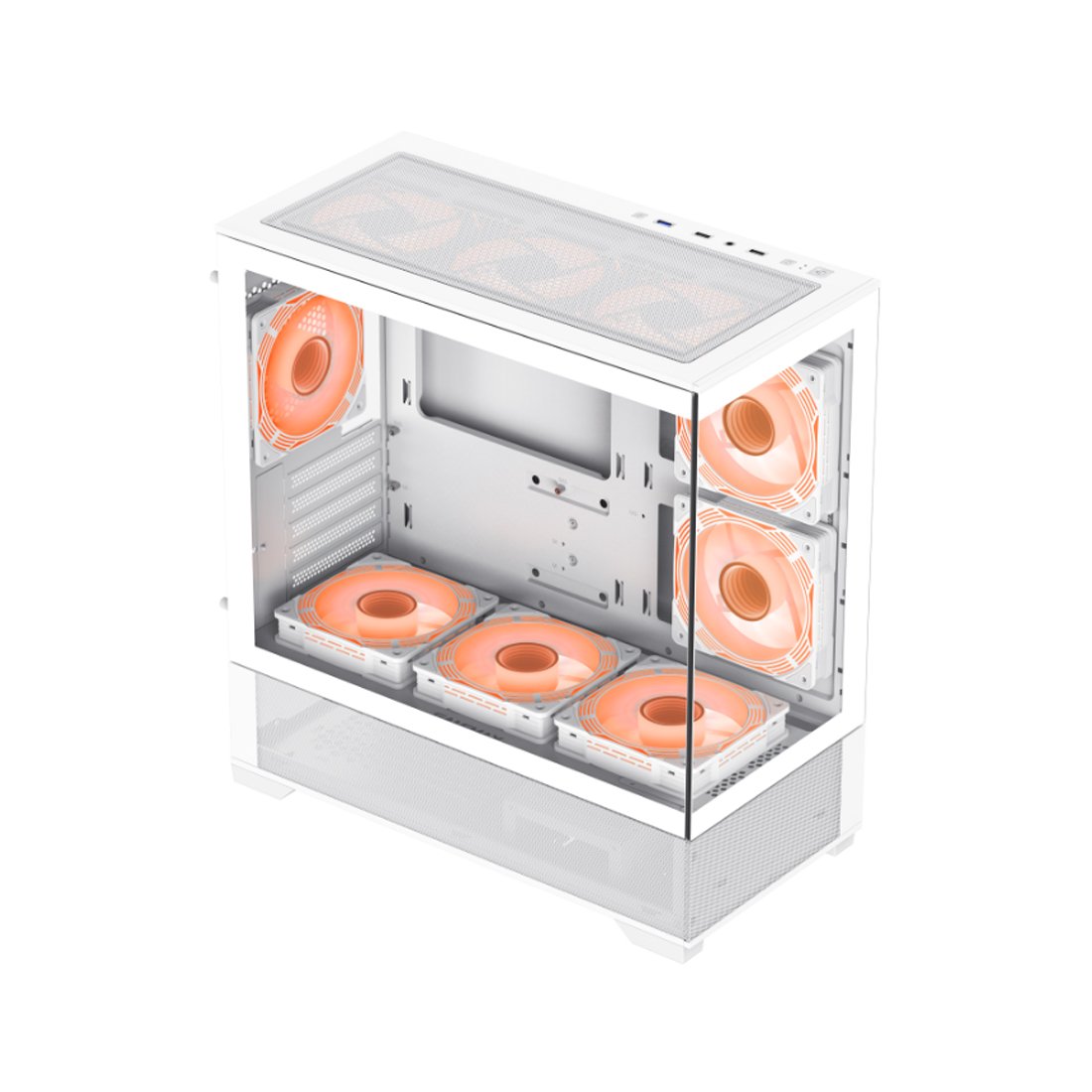 Отличная вентиляция: поддержка установки до 9 вентиляторов 120 мм, верхняя панель с мелкой сеткой и вентиляционные отверстия в кожухе БП обеспечивают хорошую циркуляцию воздуха.
