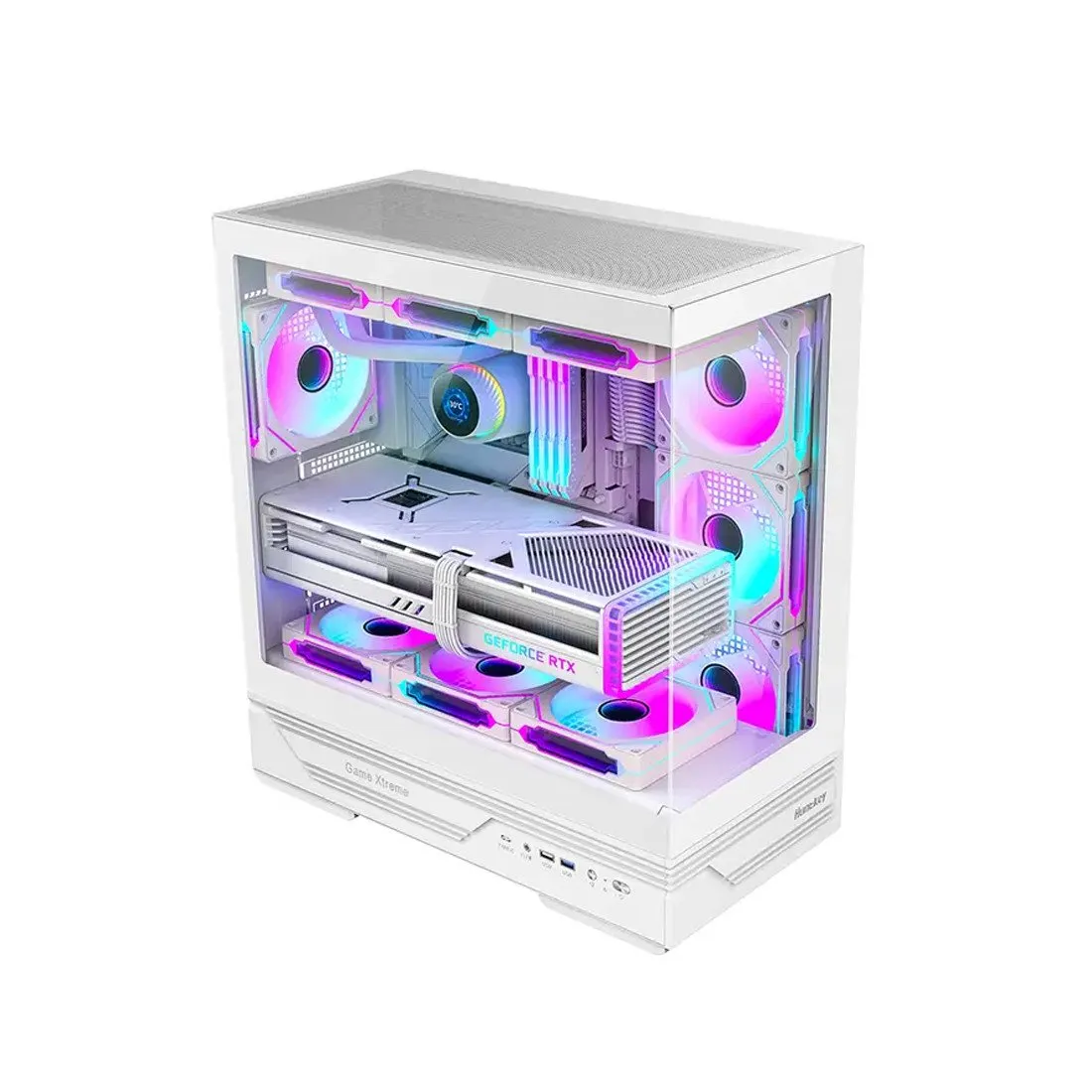 Huntkey GX760A Fortune White — современное решение для сборки мощного настольного ПК в формате ATX. Он сочетает стильный дизайн с функциональным набором возможностей, ориентирован на энтузиастов, геймеров и пользователей, кто хочет «смотреть внутрь» своей системы.