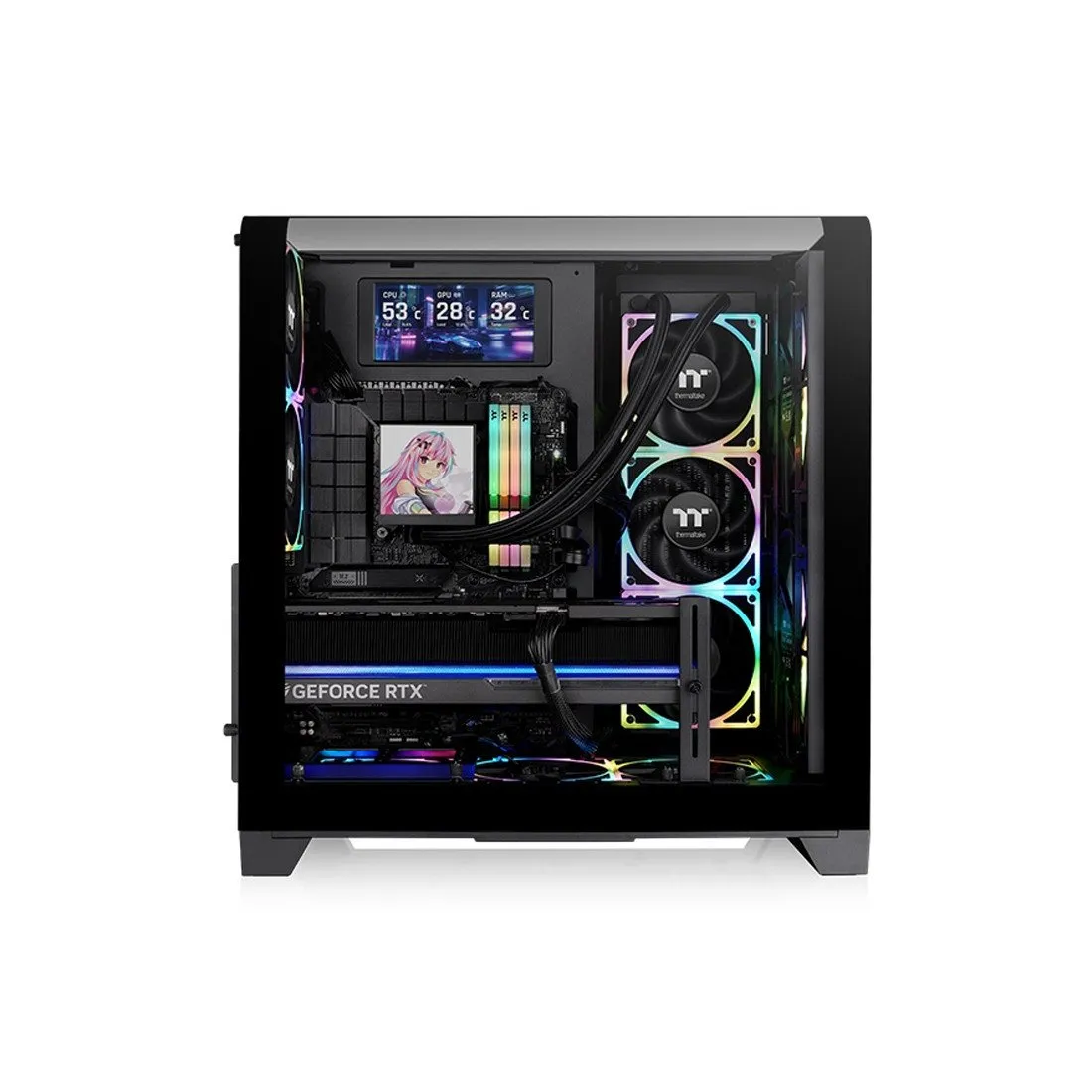 Благодаря двум предустановленным 200-мм вентиляторам спереди и одному 120-мм вентилятору сзади, мы смогли убедиться, что View 300 MX обеспечивает потрясающую эффективность охлаждения, благодаря чему внутренняя температура остается низкой и стабильной в любое время.