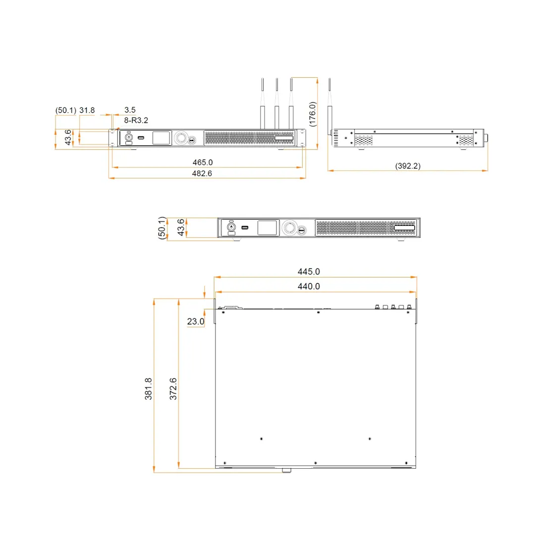 • Интерфейсы вывода: 20× Gigabit Ethernet, 2× оптических порта (OPT), аудиовыходы: SPDIF, 3,5 мм, HDMI eARC, Phoenix-контакт.