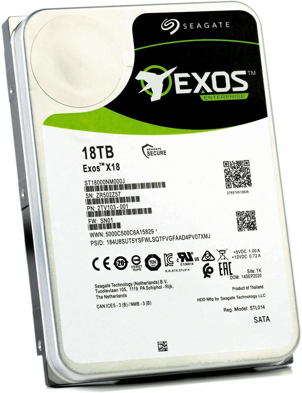 18 ТБ Жесткий диск Seagate Exos X18 ST18000NM000J сочетает в себе большую емкость и высокую производительность, за счет чего может стать универсальным решением для частного и коммерческого использования. Благодаря своим возможностям модель отлично подойдет как для систем хранения данных любого класса и систем видеонаблюдения, так и для персональных настольных решений. Жесткий диск Seagate Exos X18 использует в основе своей конструкции передовые технологии и высококачественные компоненты, что обеспечивает высокую производительность. В частности, скорость вращения вала в данной модели достигает 7200 об/мин. Также модель оснащена буфером на 256 МБ. Благодаря этому, а также интерфейсу SATA III накопитель отличается высокой скоростью работы – вплоть до 270 МБ/с. Кроме того, диск отличается высокой надежностью и стабильностью работы, что обеспечит безопасное хранение информации в любых условиях.