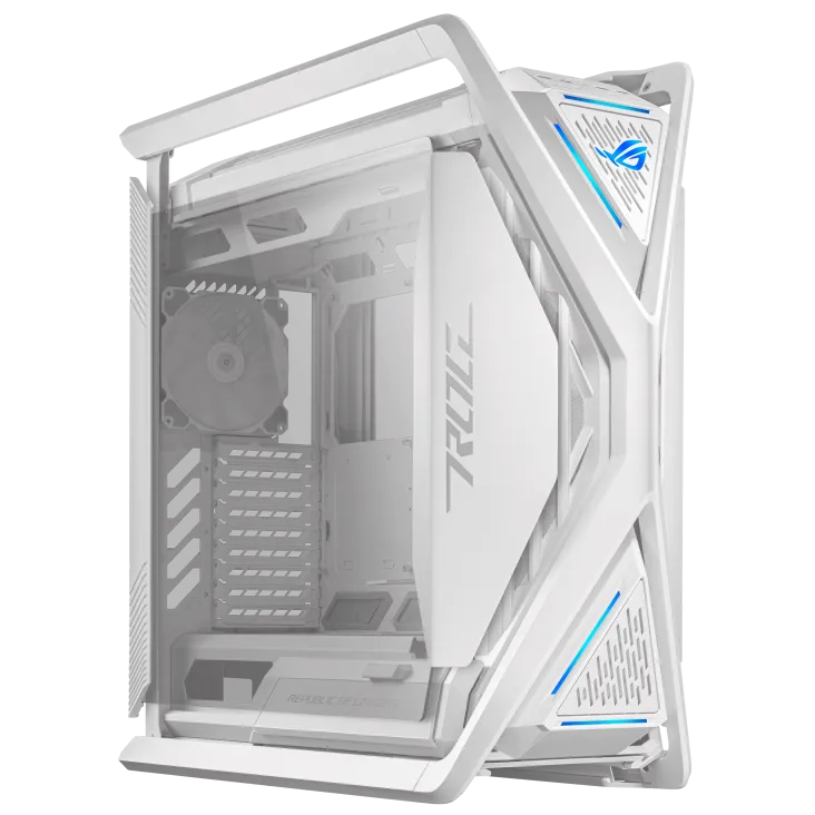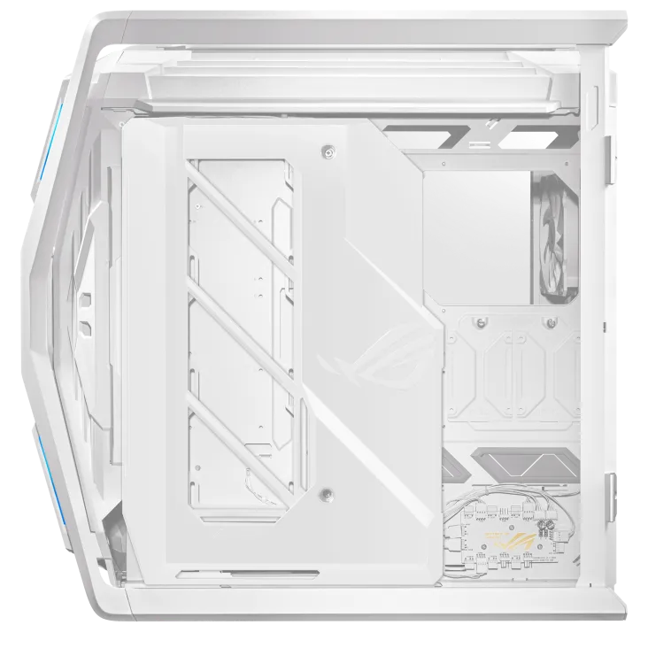 Корпус ROG Hyperion GR701 BTF Edition - это X-фактор как в форме, так и в функциях, которого так жаждали сборщики по всему миру. Благодаря поддержке двух 420-миллиметровых радиаторов, мощных видеокарт, полностью интегрированному двустороннему алюминиевому держателю видеокарты, 60-ваттной зарядке устройств и двум передним разъемам USB-C для совместимых материнских плат ROG, это действительно корпус для ПК в желанном стиле ROG.