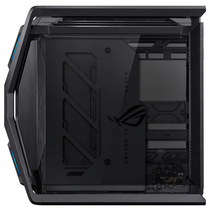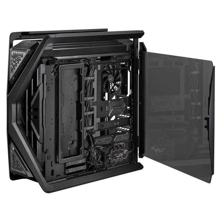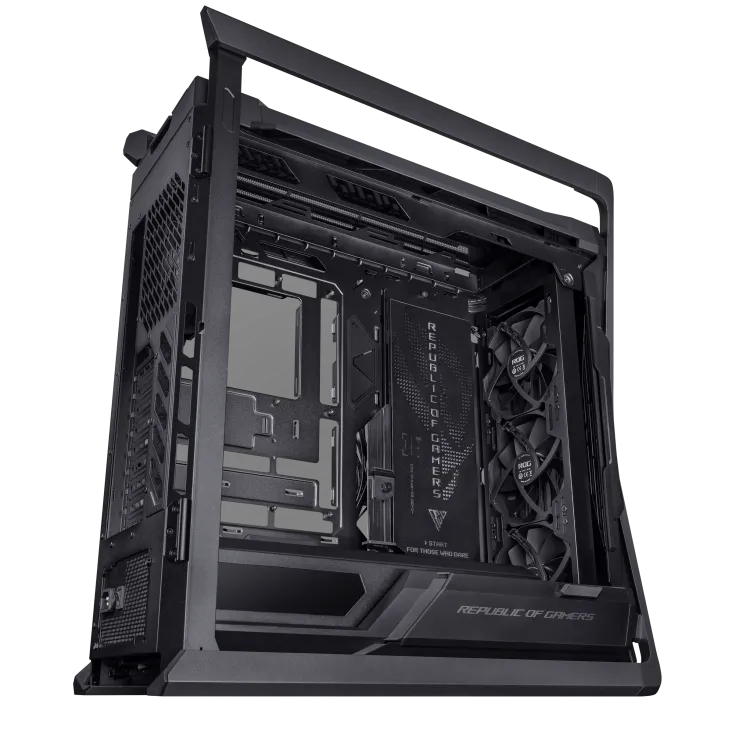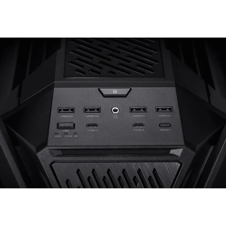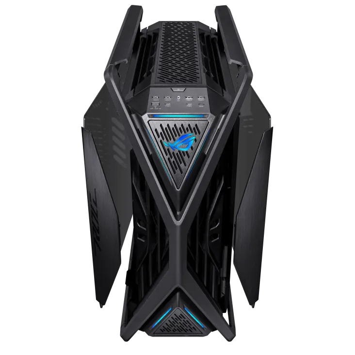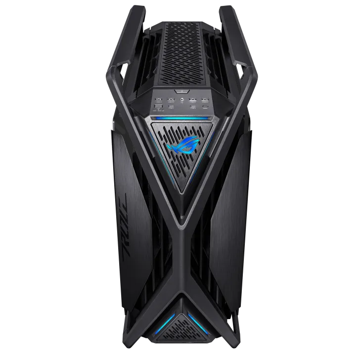Корпус ROG Hyperion GR701 BTF Edition - это X-фактор как в форме, так и в функциях, которого так жаждали сборщики по всему миру. Благодаря поддержке двух 420-миллиметровых радиаторов, мощных видеокарт, полностью интегрированному двустороннему алюминиевому держателю видеокарты, 60-ваттной зарядке устройств и двум передним разъемам USB-C для совместимых материнских плат ROG, это действительно корпус для ПК в желанном стиле ROG.