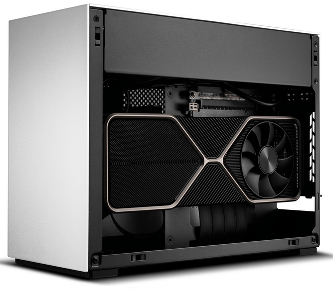 A4-H2O — это 11-литровый корпус малого форм-фактора, созданный в сотрудничестве с DAN Cases. Основанный на оригинальной концепции многослойного корпуса DAN A4-SFX, A4-H2O продолжает минималистский и компактный форм-фактор с улучшенной аппаратной совместимостью (включая водяное охлаждение AIO) и упрощает установку. Компоновка типа «сэндвич» позволяет разместить трехслотовый графический процессор в компактном корпусе. В сочетании с переходным кабелем PCIe Gen. 3 или Gen. 4 графический процессор расположен за материнской платой и оставляет место для 240-мм радиатора в верхней части корпуса. Нижняя, боковые и верхняя сетчатые панели обеспечивают прямое охлаждение компонентов за счет поступления свежего воздуха. Съемный монтажный кронштейн предназначен для поддержки блоков питания SFX и SFX-L. Удлинитель шнура питания также включен и предварительно проложен, чтобы не мешать другому оборудованию.