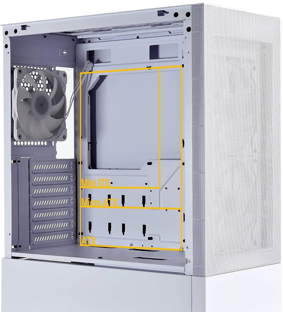 Эффективность охлаждения Ceres 300 TG ARGB Snow замечательна благодаря двум вентиляторам охлаждения CT140 ARGB Sync, предустановленным спереди, и одному вентилятору охлаждения CT140, предустановленному сзади. Кроме того, более 55% панелей перфорированы, что обеспечивает мощный поток воздуха через перфорированные вырезы.