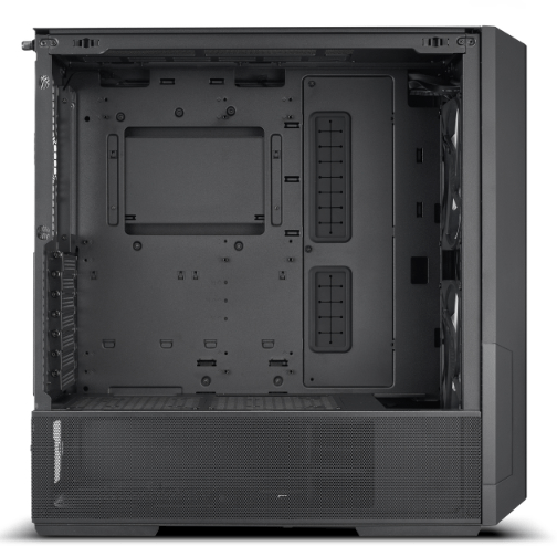Корпус с двумя сменными передними панелями - одна из закаленного стекла, а другая из метала с перфорацией в виде логотипов компании. Для эффективного охлаждения всех комплектующих вашего ПК, View 300 MX с завода комплектуется двумя предустановленными 200-мм ARGB ШИМ вентиляторами спереди и одним 120-мм ARGB ШИМ вентилятором сзади.