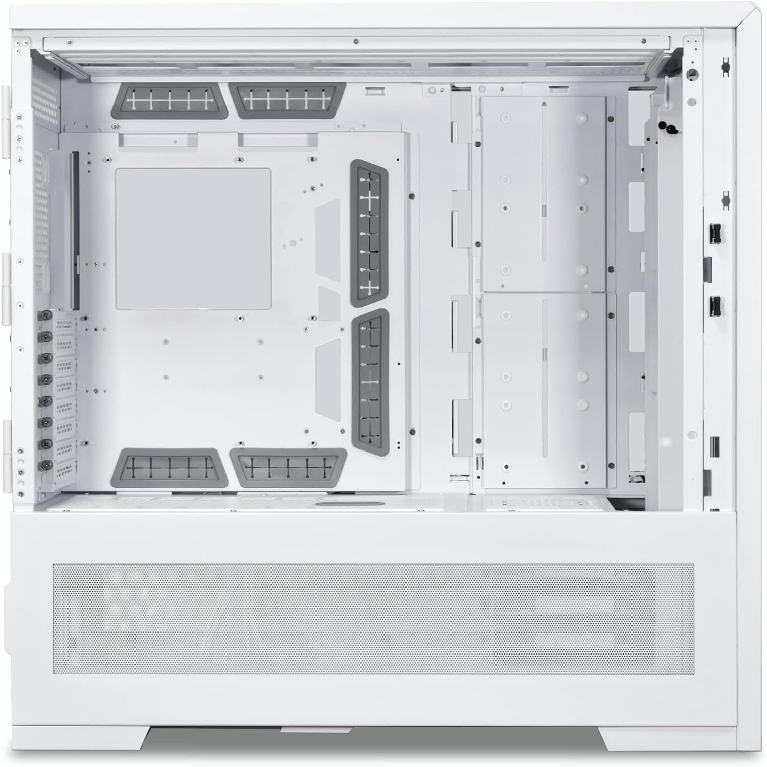 Корпус Lian Li V3000 PLUS White - Топовый, стильный и функциональный корпус для энтузиастов с возможностью гибкой сборки. С прозрачными стеклянными панелями, он обеспечивает отличный обзор внутренних компонентов. Корпус обладает прочной структурой, обширными возможностями кастомизации и эффективной системой охлаждения. Удобные порты ввода/вывода и интегрированная подсветка делают его отличным выбором для построения мощной игровой системы. Благодаря съемному лотку для материнской платы и адаптируемому отсеку для блока питания V3000 PLUS можно установить в режим №1 как стандартную сборку, в режим №2 для повернутой материнской платы с уникальным внешним видом или в режим №3 как сдвоенную систему. Один корпус - 3 варианта сборки! Возможность собрать 2 ПК в одном корпусе!