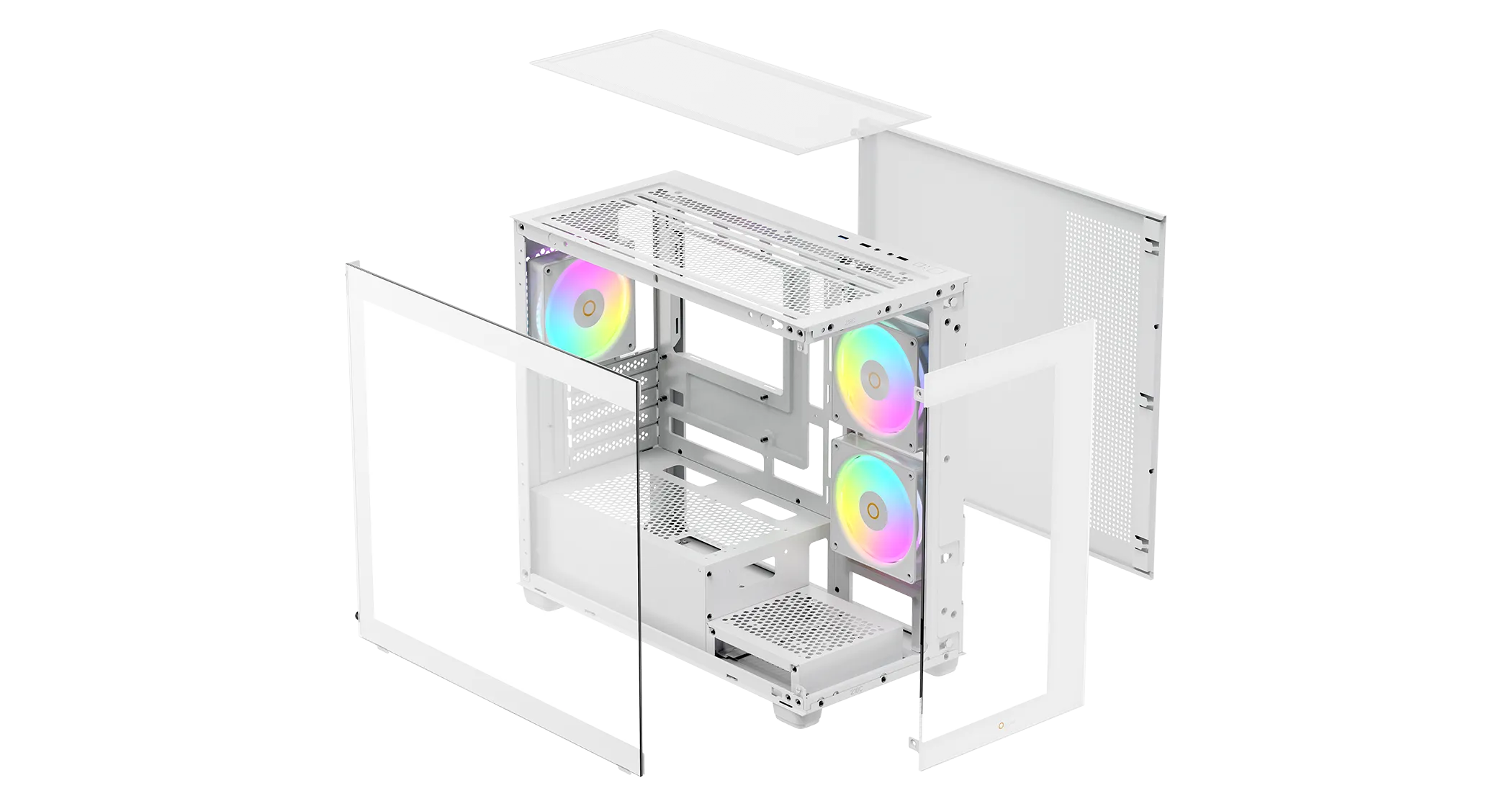 Построенный с сетчатым дизайном передней панели, этот корпус позволяет просматривать передний светодиодный вентилятор, обеспечивая при этом превосходный воздушный поток и циркуляцию..