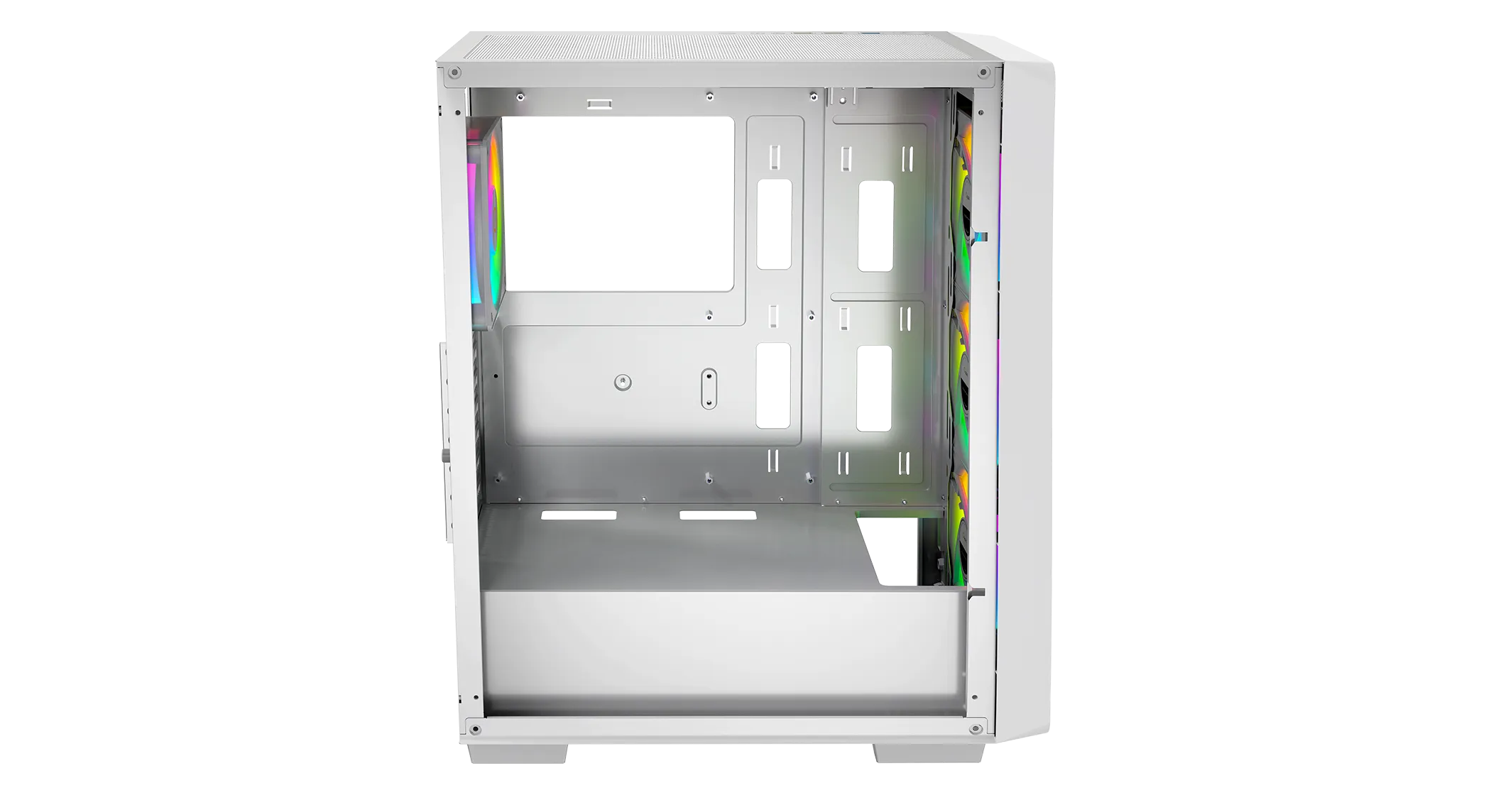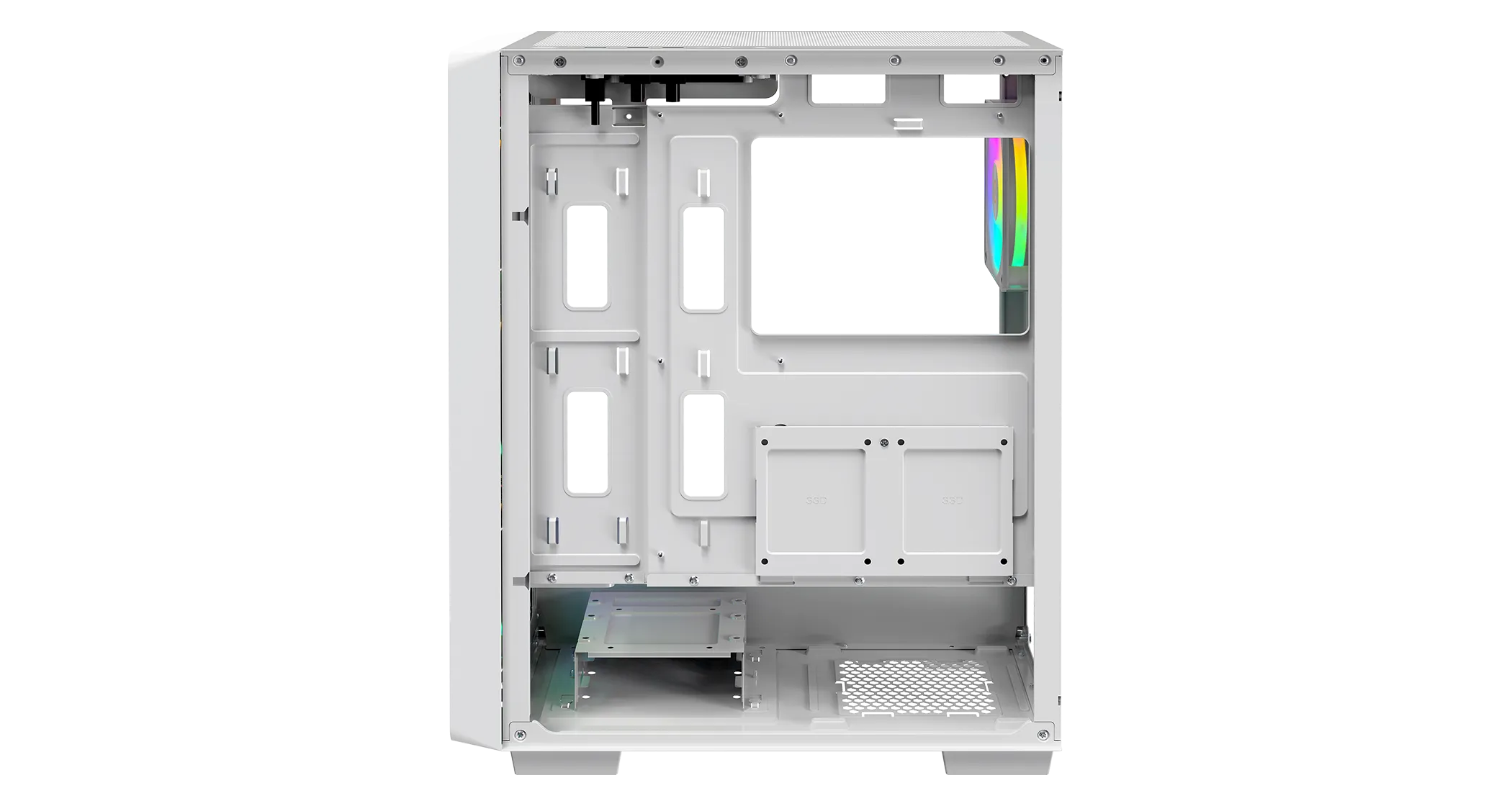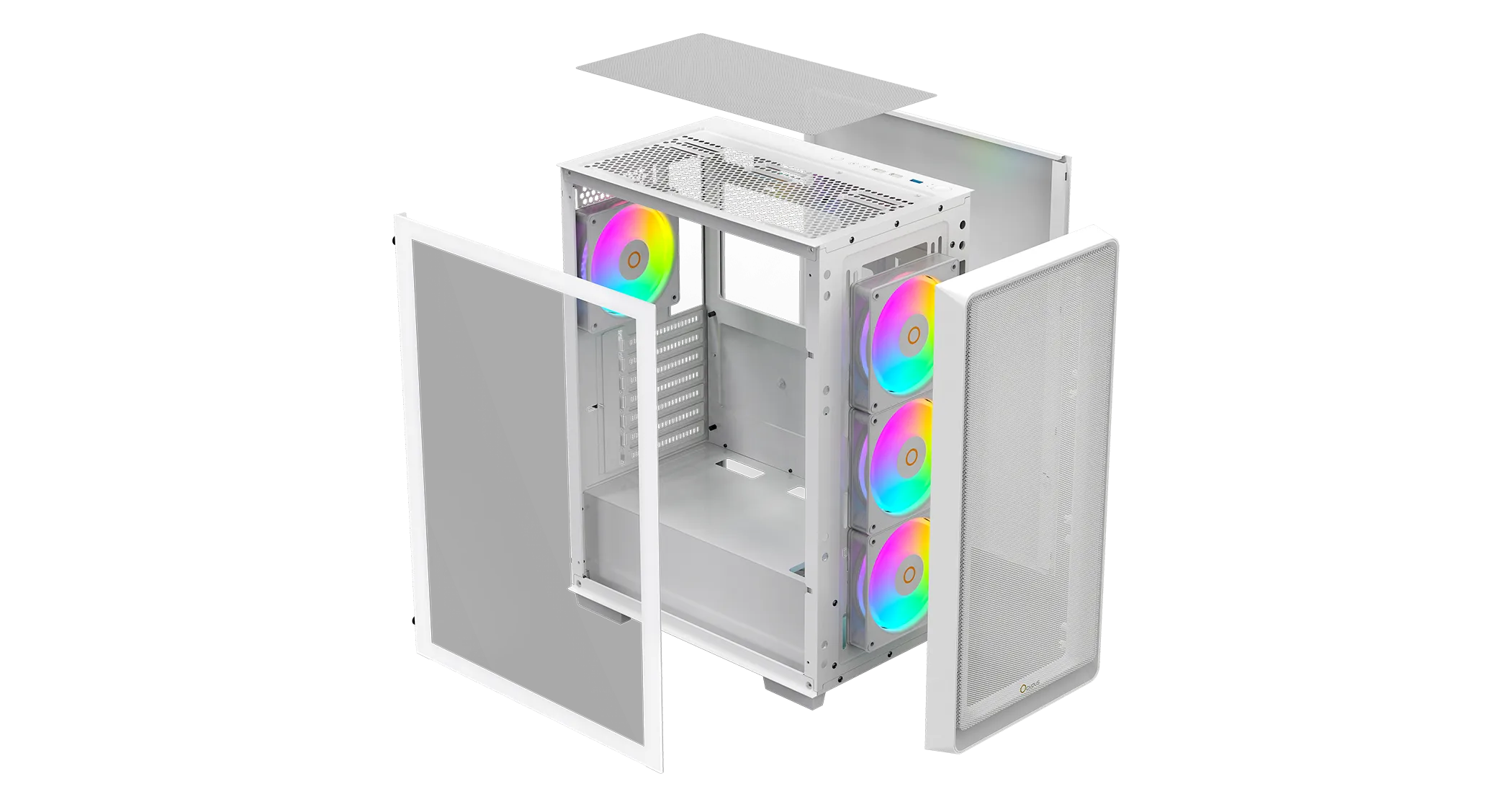 Корпус предлагает просторное внутреннее пространство, позволяющее устанавливать длинные видеокарты, высокие процессорные кулеры и крупные радиаторы систем жидкостного охлаждения, обеспечивая гибкость при выборе комплектующих. Особенность модели — улучшенная вентиляция и оптимизированный воздушный поток, обеспечиваемые продуманным размещением мест для нескольких вентиляторов, что способствует стабильному температурному режиму даже при высоких нагрузках.