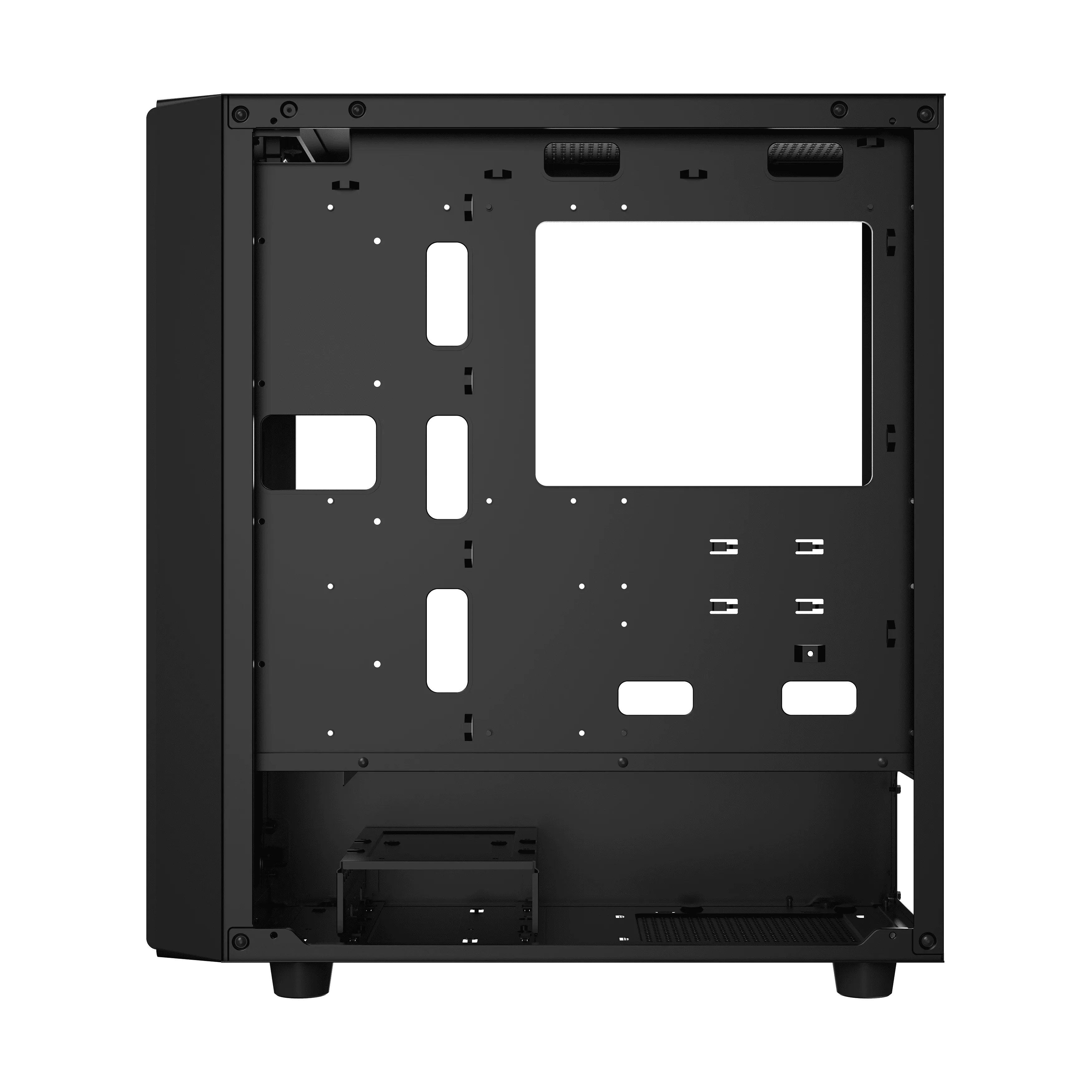 Сетчатые панели с высокой пропускной способностью обеспечивают максимальный воздушный поток как для входа, так и для выхода. Вмещает до 370-мм графического процессора и 240-мм блока питания без жесткого диска. Поддерживает радиаторы длиной до 360 мм в передней части для мощного охлаждения. Возможность установки до четырех 140-мм вентиляторов на верхней и передней панелях или шести 120-мм вентиляторов на верхней, передней и задней панелях. Оснащен магнитными пылевыми фильтрами на верхней, передней и нижней панелях.