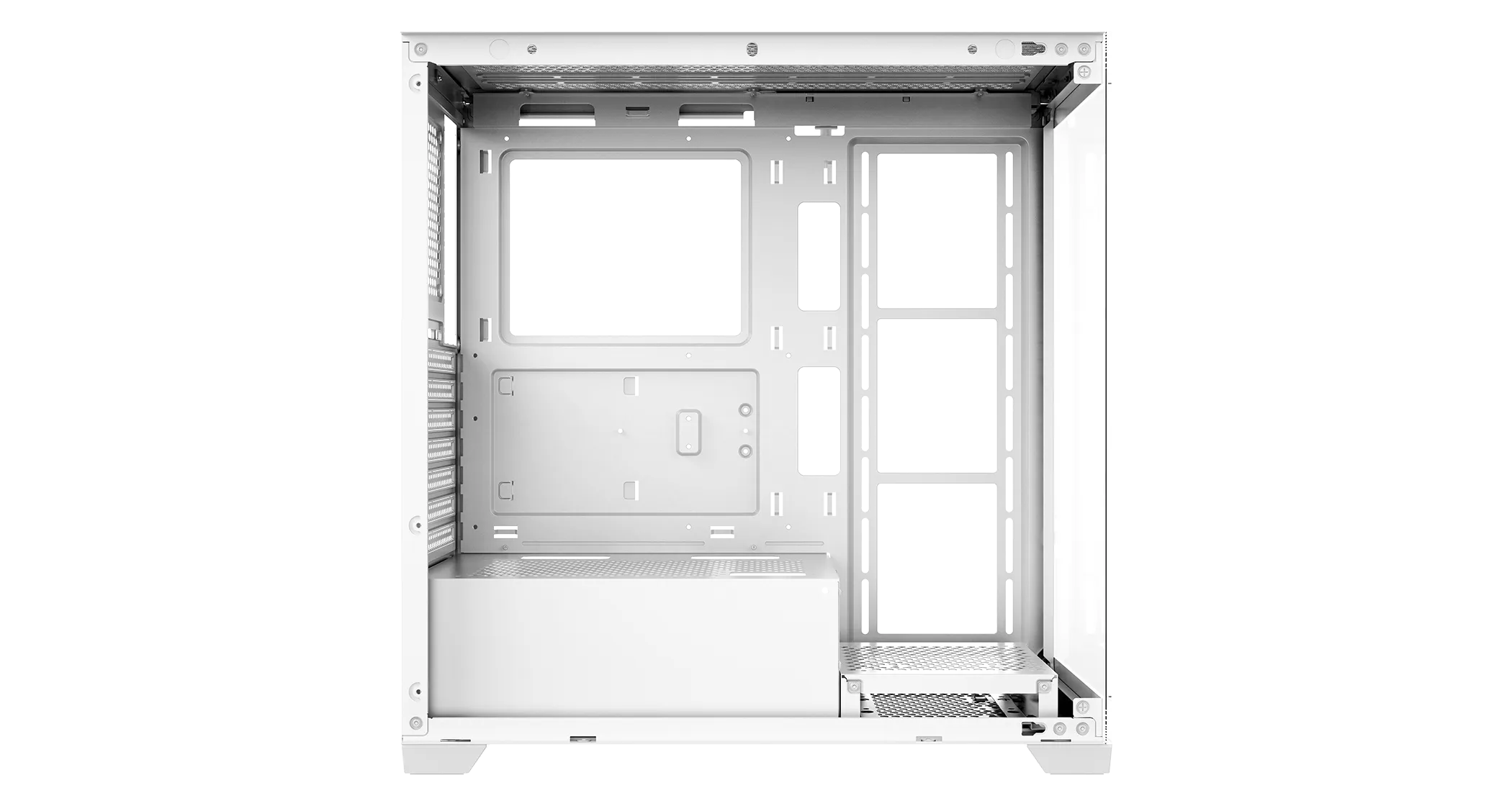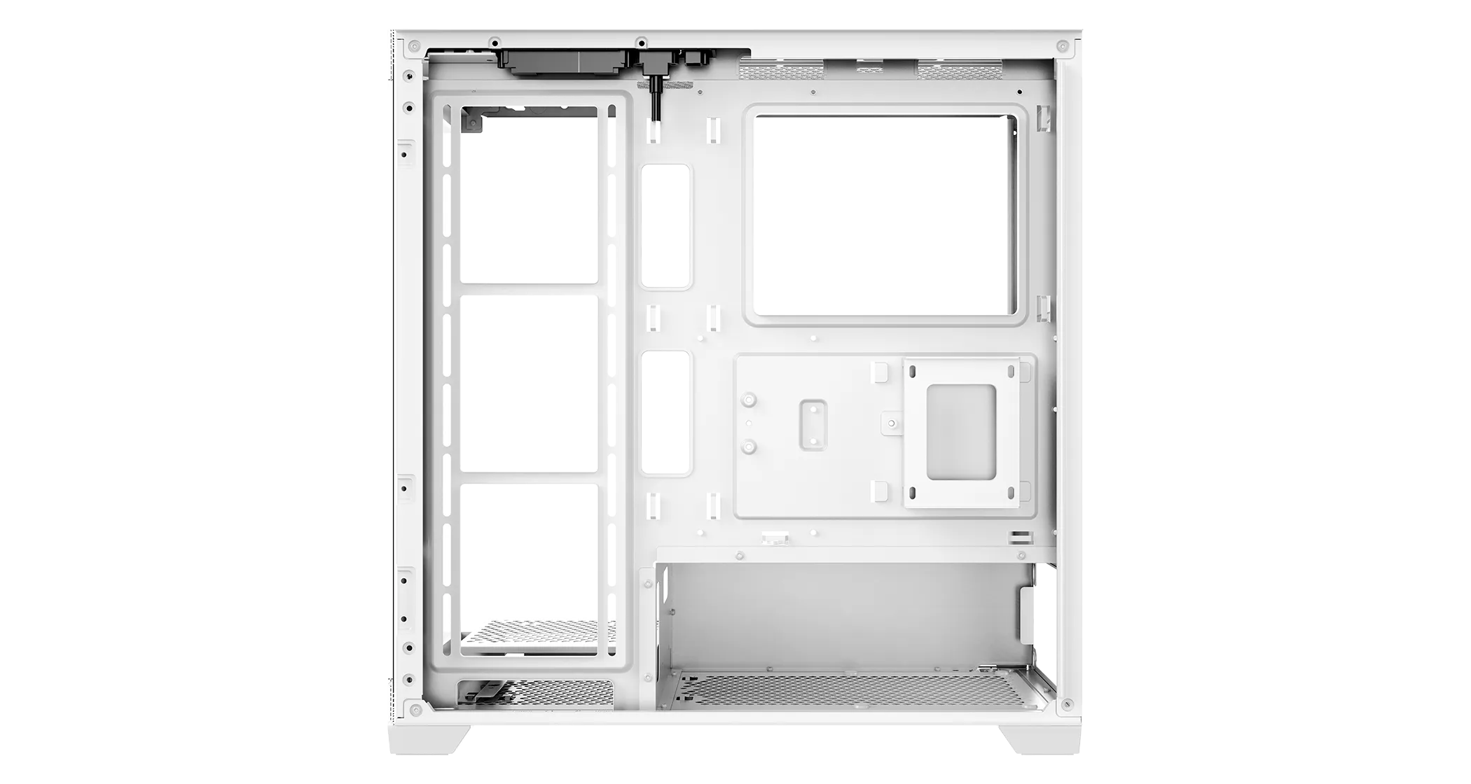 Панорамный вид без колонн обеспечивает беспрепятственный обзор внутренней части. Оптимизированная конструкция воздушного потока улучшает общие тепловые характеристики. Верхняя панель поддерживает радиаторы длиной до 360 мм. Просвет для графического процессора до 425 мм и блока питания до 250 мм. Верхняя и нижняя панели оснащены магнитными пылевыми фильтрами, которые эффективно предотвращают проникновение пыли.