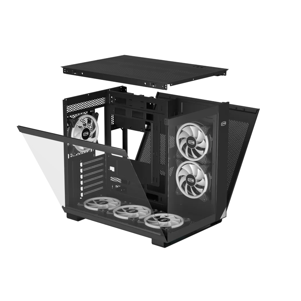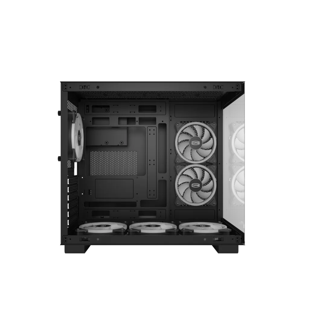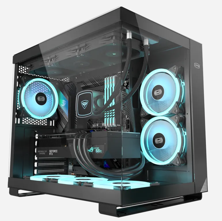 Три стороны корпуса оснащены панелями из закалённого стекла, обеспечивающими отличную видимость RGB подсветки и компонентов внутри, улучшая общую эстетику и создавая крутое игровое окружение.