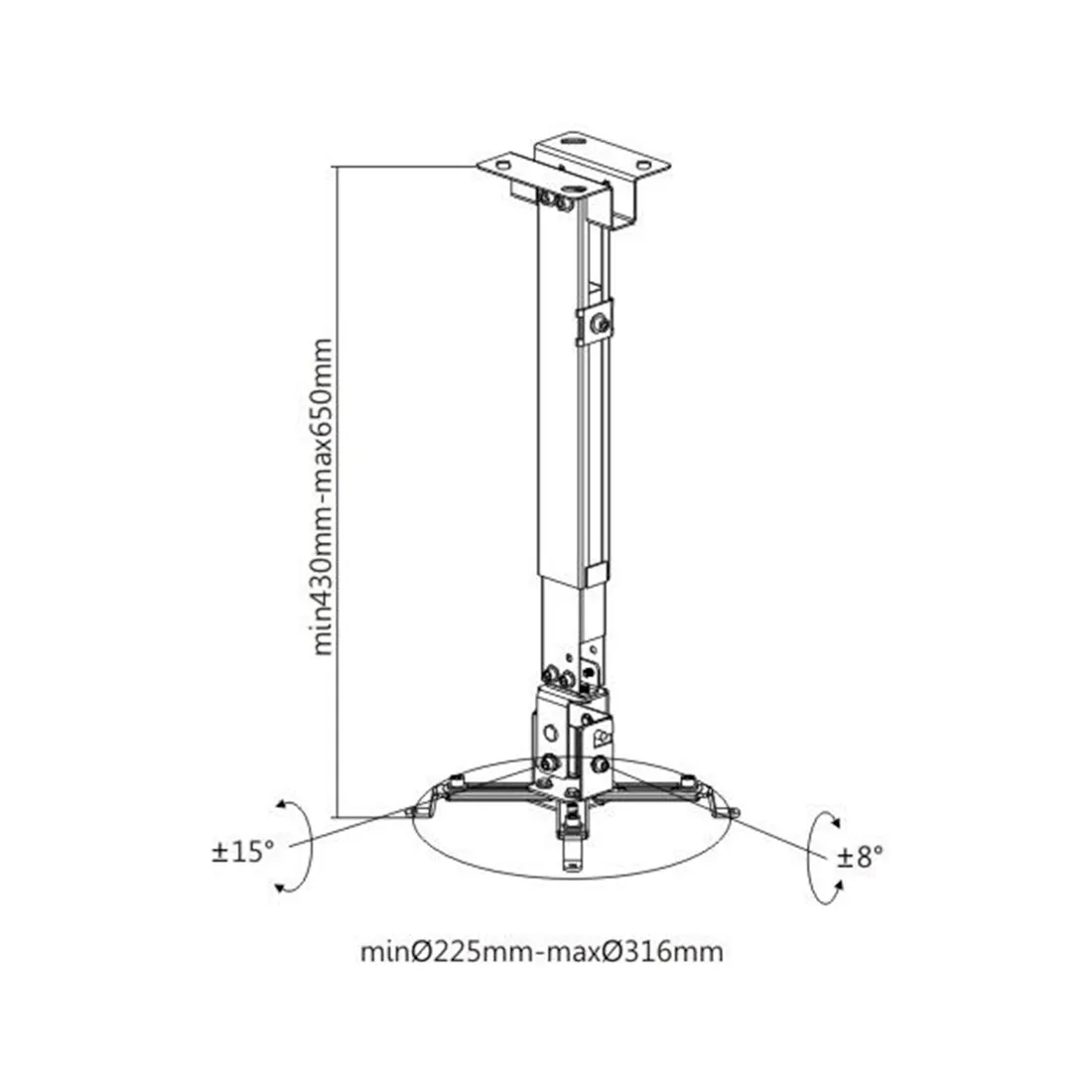 Кронштейн потолочный/настенный PRB-2G позволяет менять угол наклона вниз и вверхна +/- 15 градусов. Допустимая максимальная нагрузка 20 кг. Кронштейн изготовлен из высококачественного металла и имеет самый распространённый размер монтажных отверстий. Крепление адаптировано для простого и быстрого монтажа. В комплекте инструкция на казахском и русском языках.