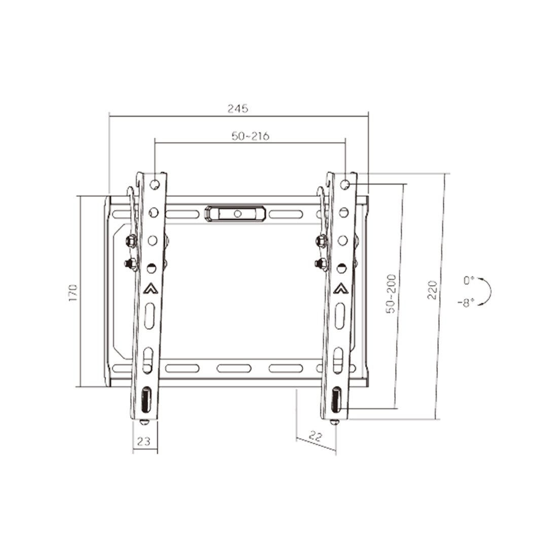 Универсальный кронштейн крепление подходит для телевизоров и мониторов с диагональю экрана от 13'' до 43''. Крепление KL37-22T позволяет менять угол наклона +/-8°,допустимая максимальная нагрузка 45 кг. Кронштейн изготовлен из высококачественного металла и имеет самый распространённый размер монтажных отверстий. Крепление адаптировано для простого и быстрого монтажа.