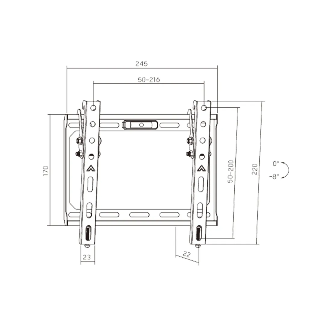Диапазон наклона: +0°~-8°