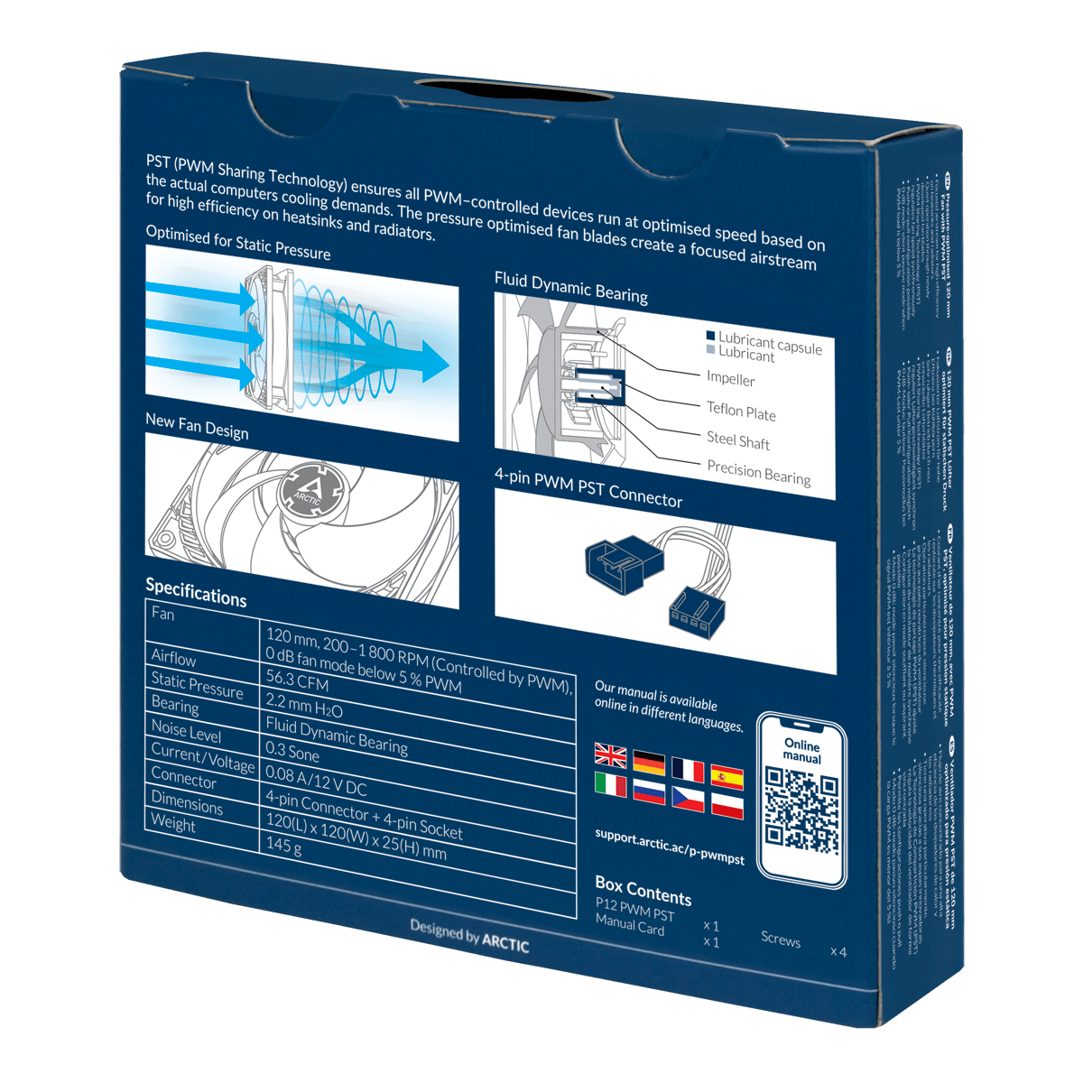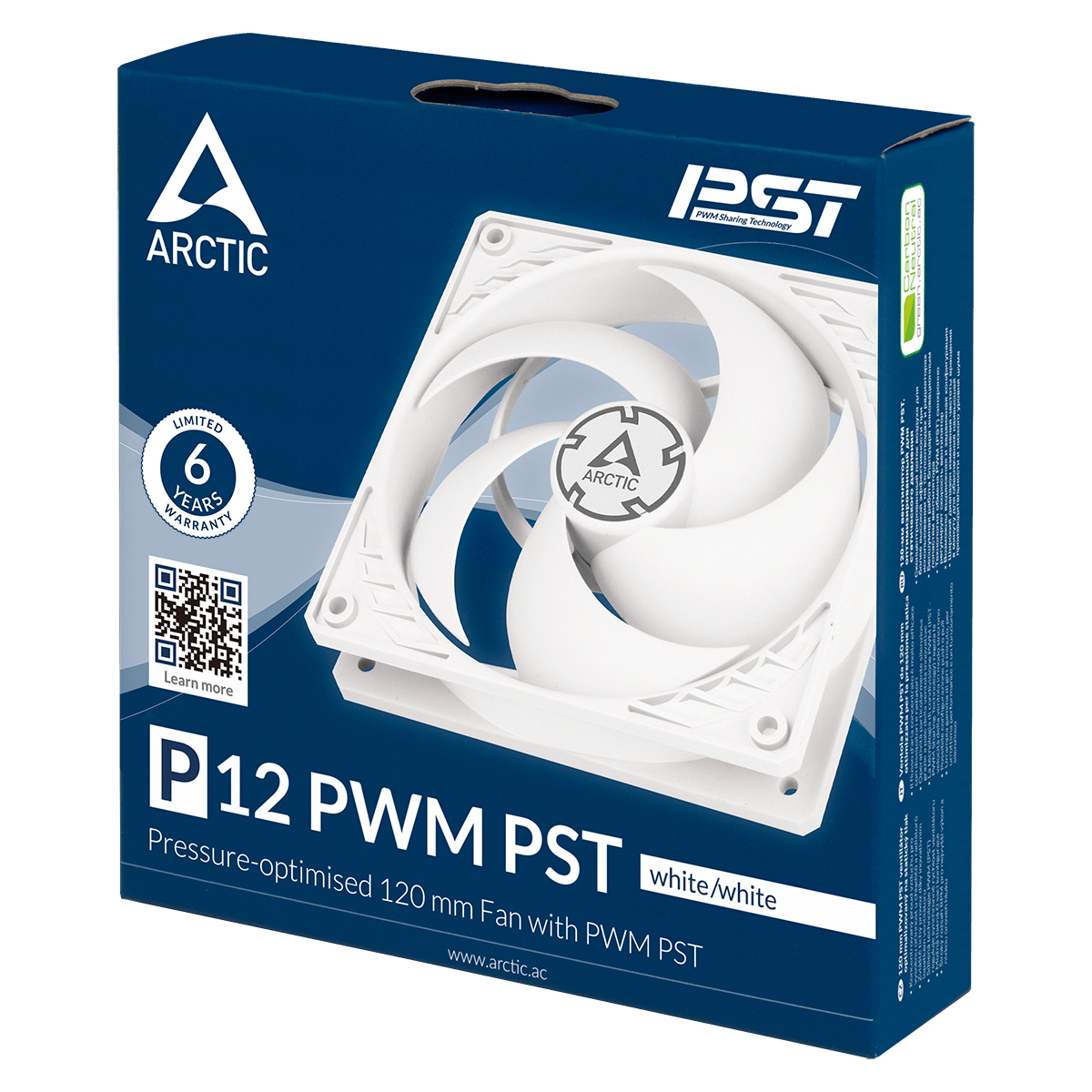 Кулер для корпуса ARCTIC P12 PWM PST (White), ACFAN00170A, 12cm, 200-1800rpm, 4Pin, Fluid Dynamic
