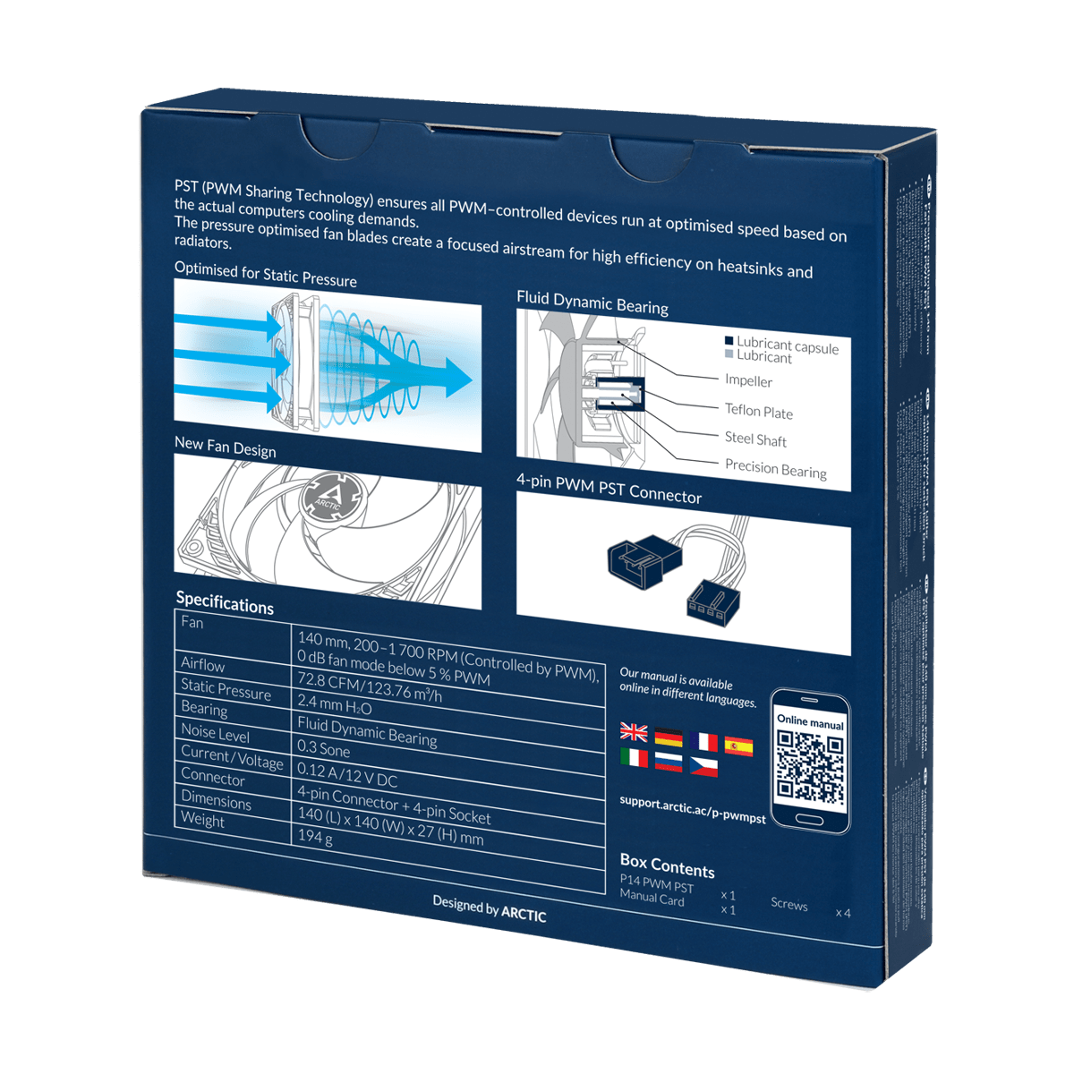 Кулер для корпуса ARCTIC P14 PWM PST (Black), ACFAN00125A, 14cm, 200-1700rpm, 4Pin, Fluid Dynamic