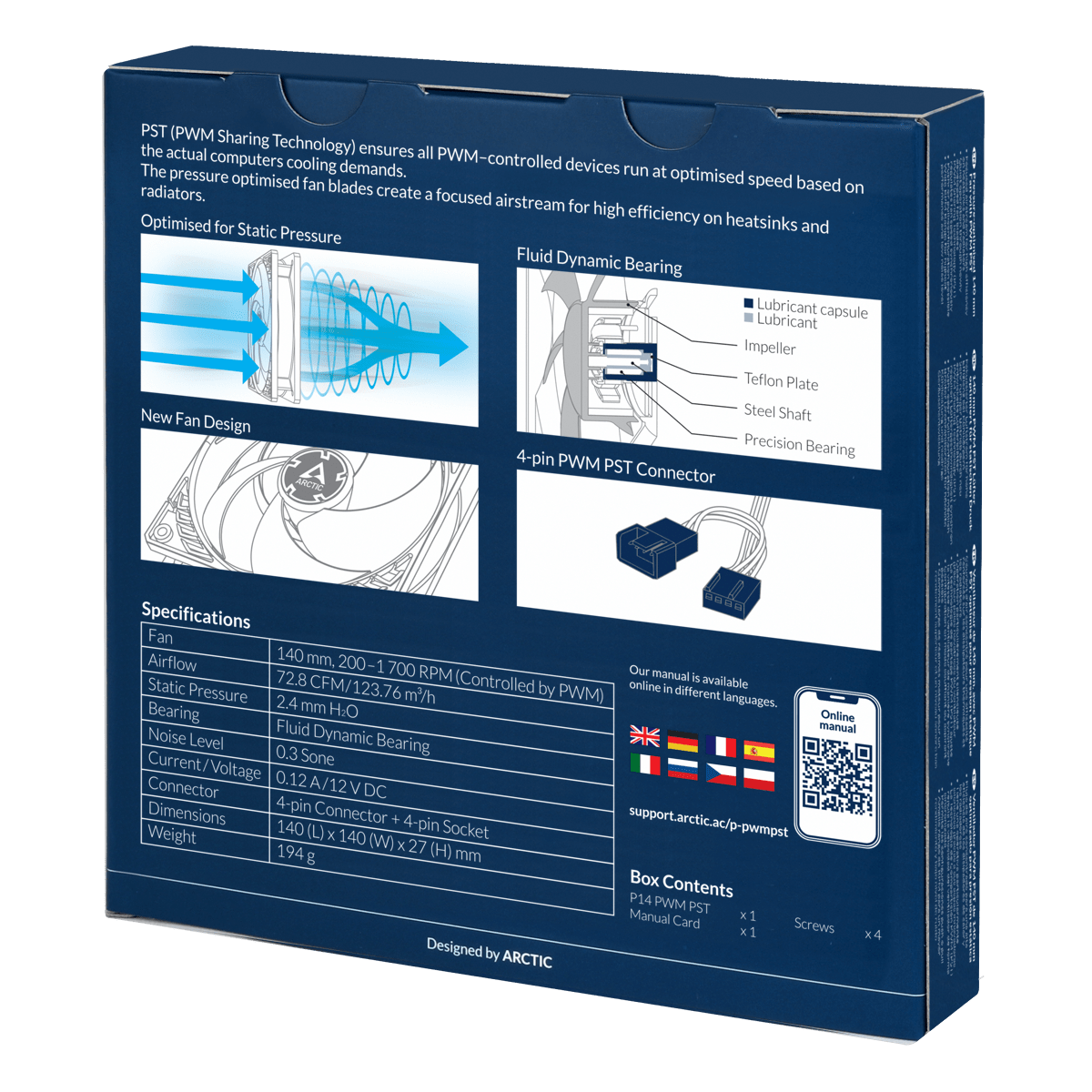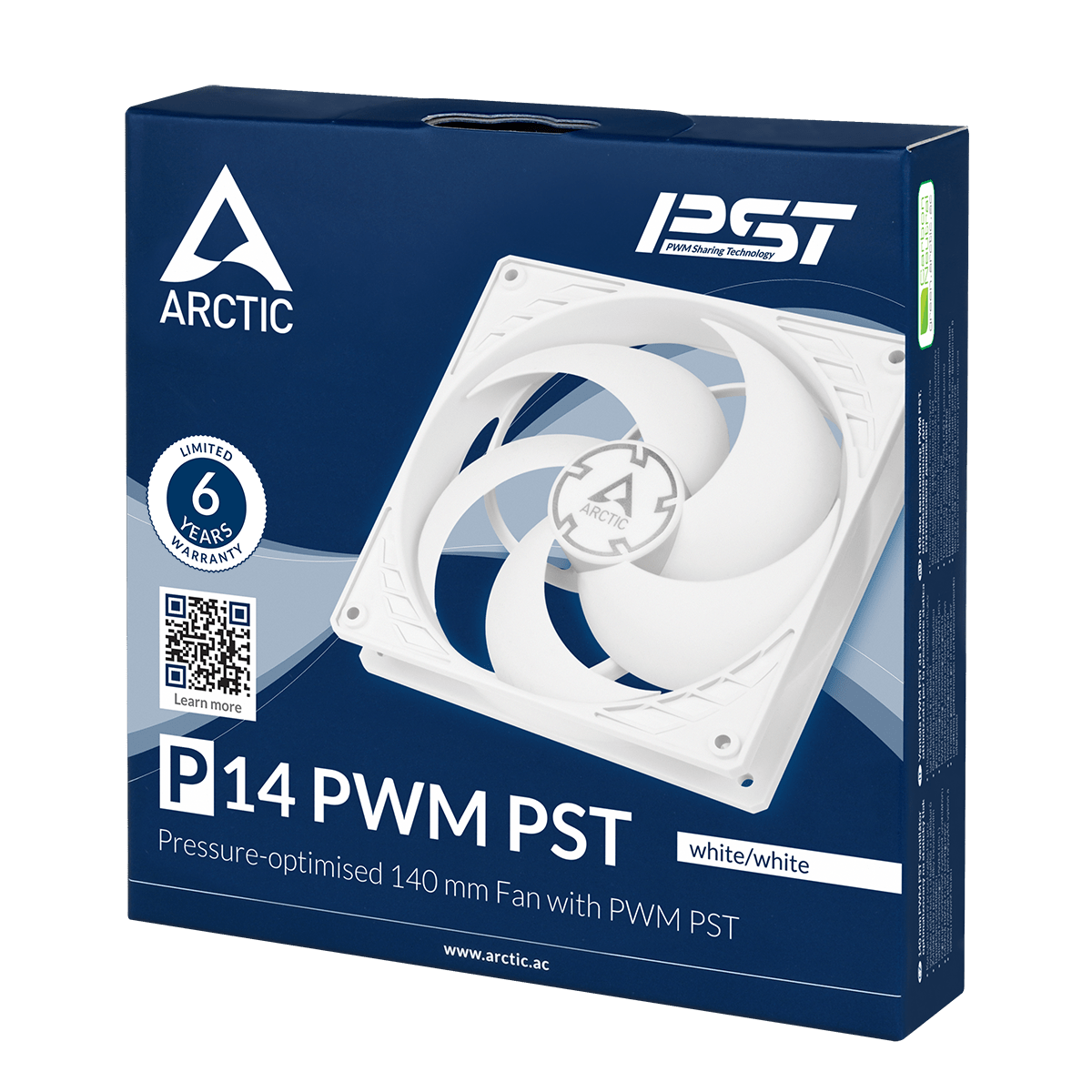 Кулер для корпуса ARCTIC P14 PWM PST (White), ACFAN00197A, 14cm, 200-1700rpm, 4Pin, Fluid Dynamic