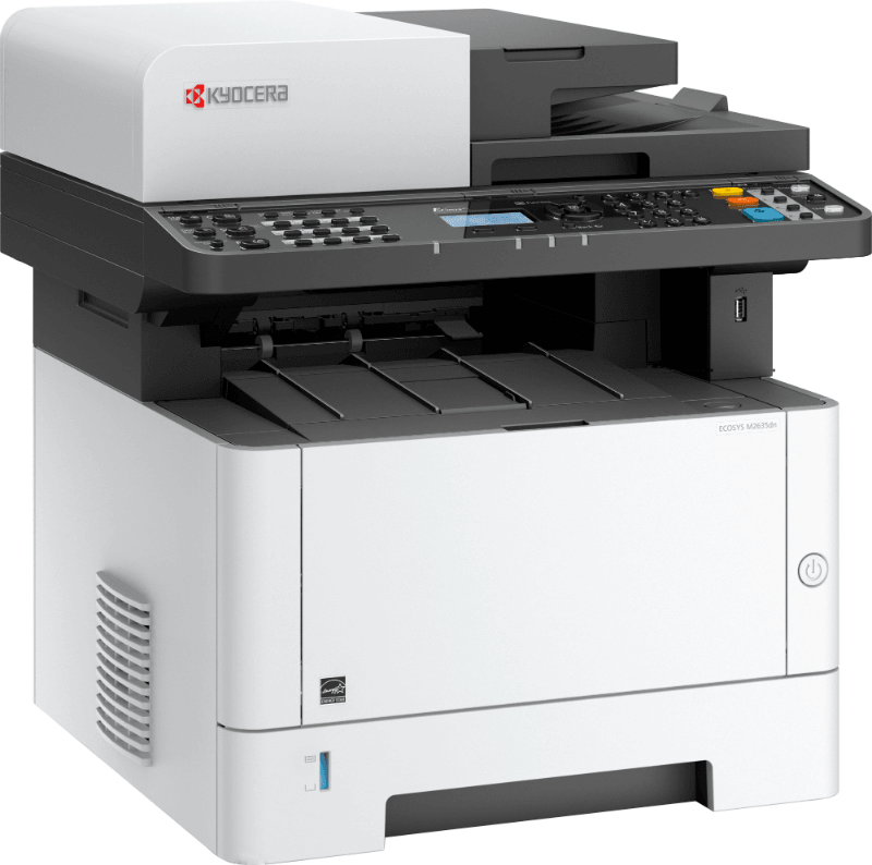 МФУ лазерное Kyocera ECOSYS M2635dn (A4), монохромное, Printer/Scanner/Copier/Fax, 1200x1200 dpi, 35 ppm, 512 MB, 800 MHz, tray 100+250 sheets, ADF 50 sheets, USB+Ethernet, Duplex, EcoPrint, drum 100k, starter toner 1k