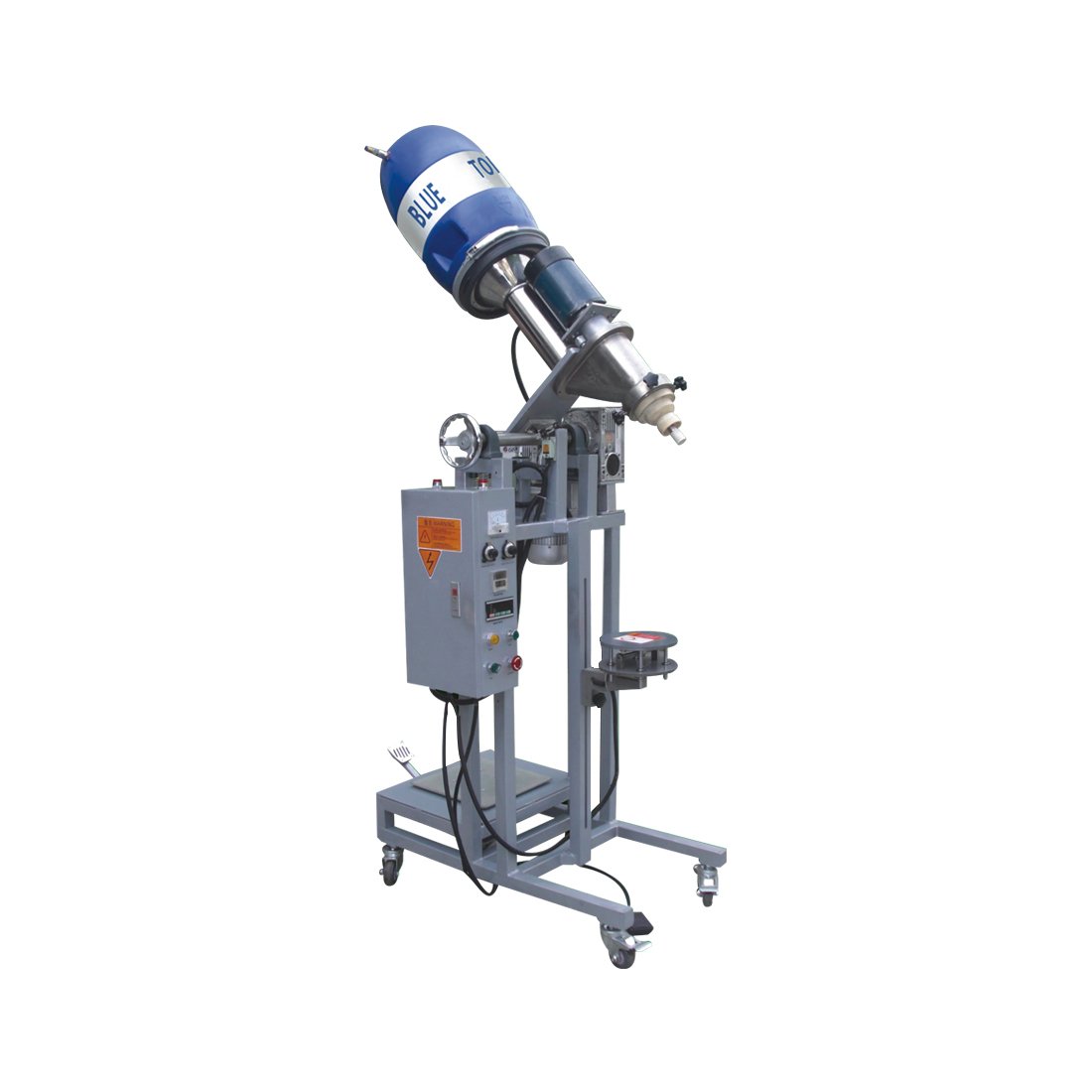 Машина предназначена для расфасовки тонера из мешков в малые емкости и с требуемым весом. Фасуемый вес можно задать с помощью датчика веса или таймера. Легко отчищается