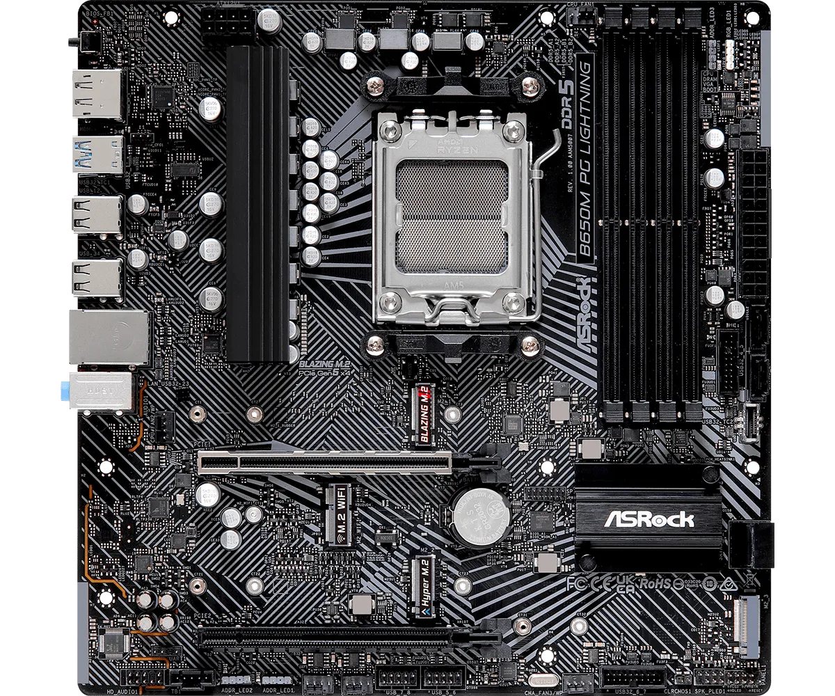 Материнская плата ASRock B650M PG Lightning AM5 4xDDR5 4xSATA3 3xM.2 HDMI DP mATX
