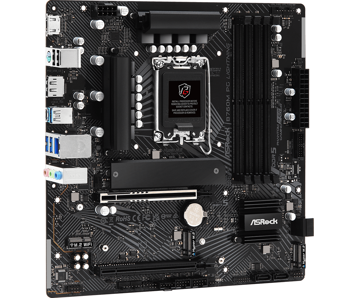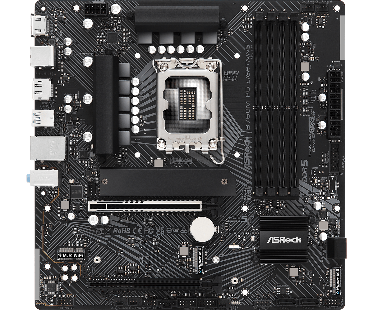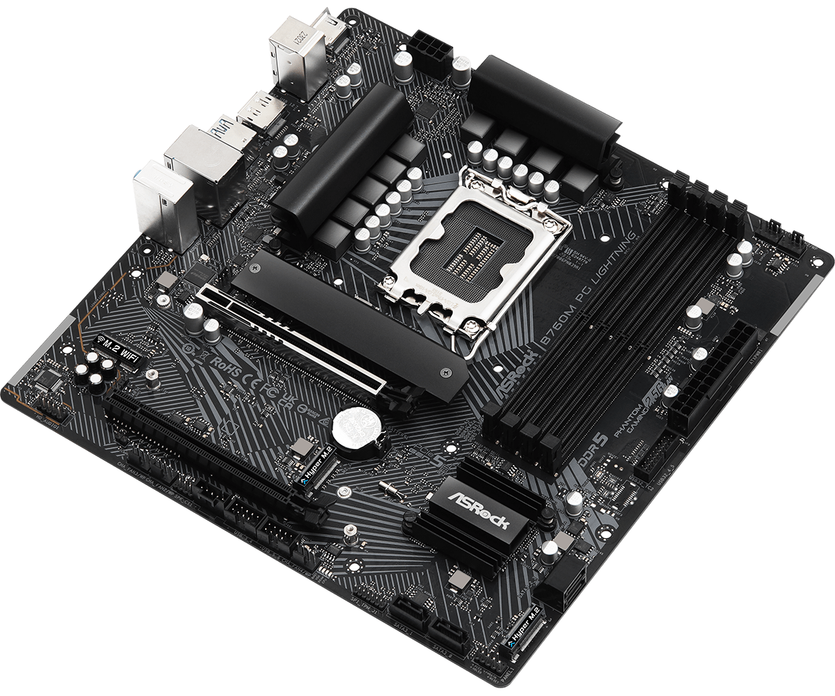 Материнская плата ASRock B760M PG LIGHTNING LGA1700 4xDDR5 4xSATA 3xM.2 HDMI DP mATX
