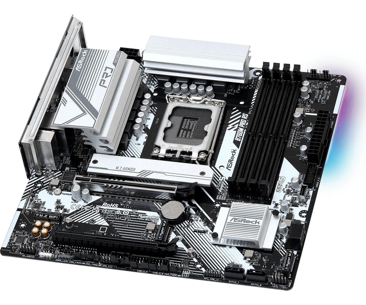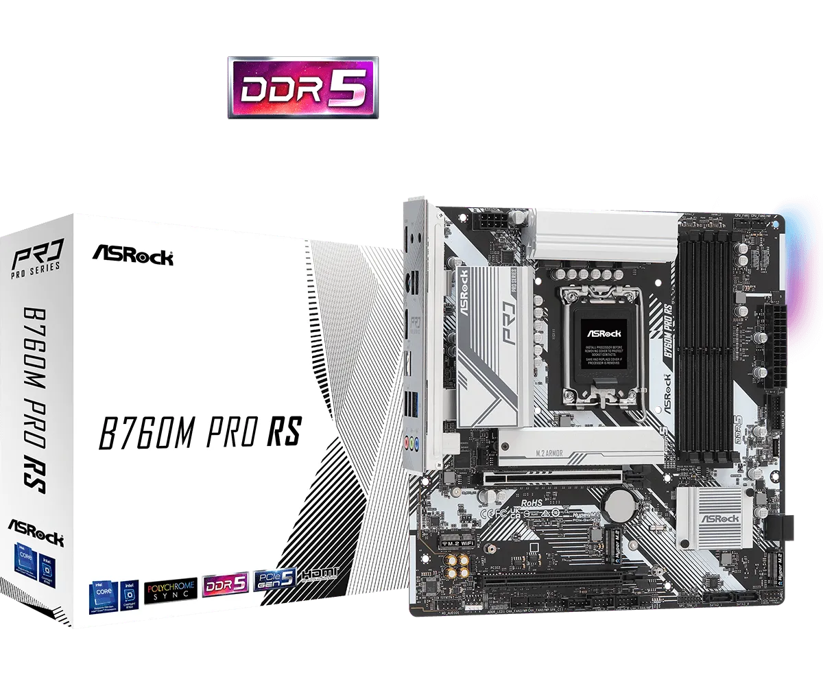 Материнская плата ASRock B760M PRO RS LGA1700 4xDDR5 4xSATA RAID 2xM.2 HDMI DP mATX