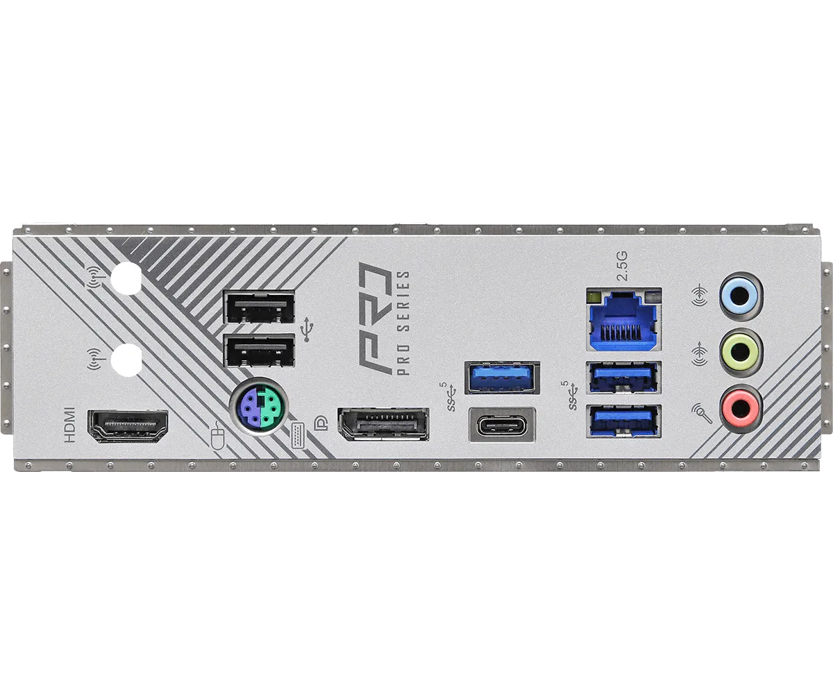 Серия Pro-A разработана для повышения стабильности, долговечности и эффективности, она обеспечивает надежную производительность, удобные функции и элегантный внешний вид, что делает ее идеальным решением для повседневных вычислительных задач. Supports AMD Socket AM5 Ryzen™ 9000, 8000 and 7000 Series Processors 6+1+1 Phase Power Design, Dr.MOS for VCore 2 x DDR5 DIMMs Supports Dual Channel, up to 8200+ (OC) 2 PCIe 4.0 x16, 1 PCIe 4.0 x1, 1 M.2 Key E for WiFi Graphics Output Options: 1 HDMI, 1 DisplayPort Realtek ALC897 7.1 CH HD Audio Codec, Nahimic Audio 1 Blazing M.2 (PCIe Gen5x4) 1 Hyper M.2 (PCIe Gen4x4) 4 SATA3 2 USB 3.2 Gen1 Type-C (1 Rear, 1 Front) 5 USB 3.2 Gen1 (3 Rear, 2 Front) 6 USB 2.0 (2 Rear, 4 Front) Realtek 2.5G LAN Supports BIOS Flashback