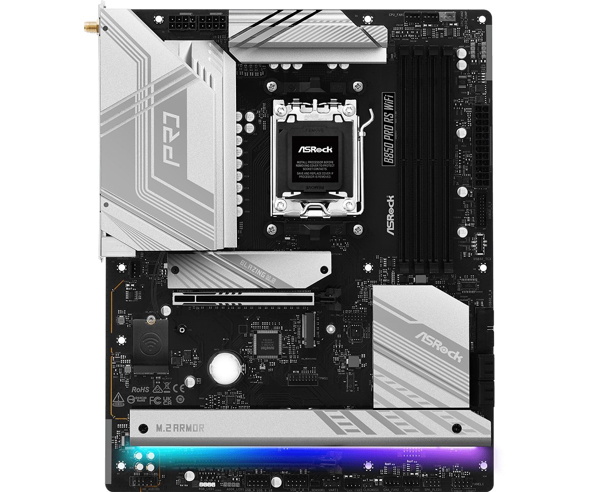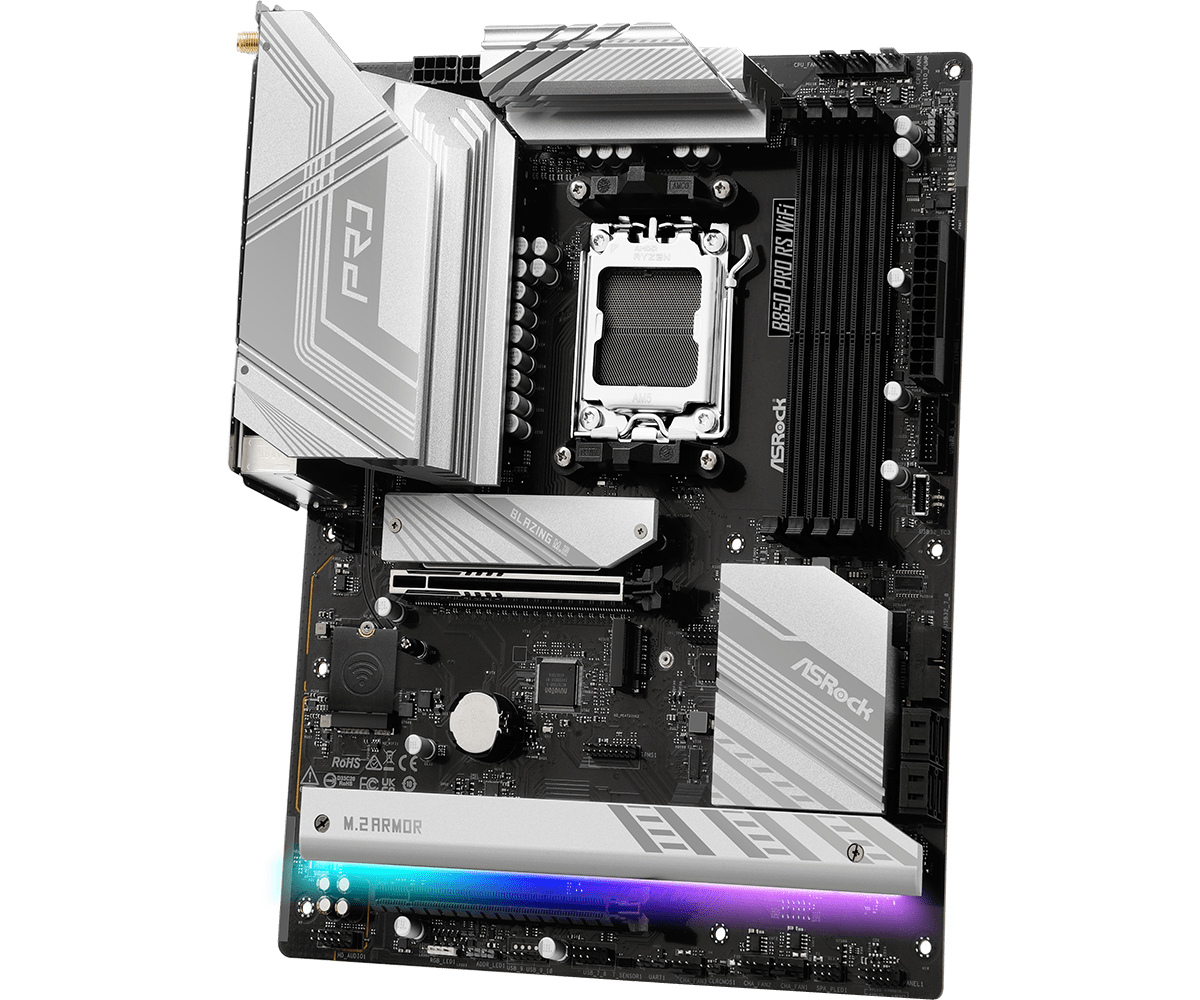 Материнская плата ASRock B850 PRO RS WIFI AM5 4xDDR5 4xSATA 3xM.2 1xUM.2 21xUSB 1xHDMI ATX