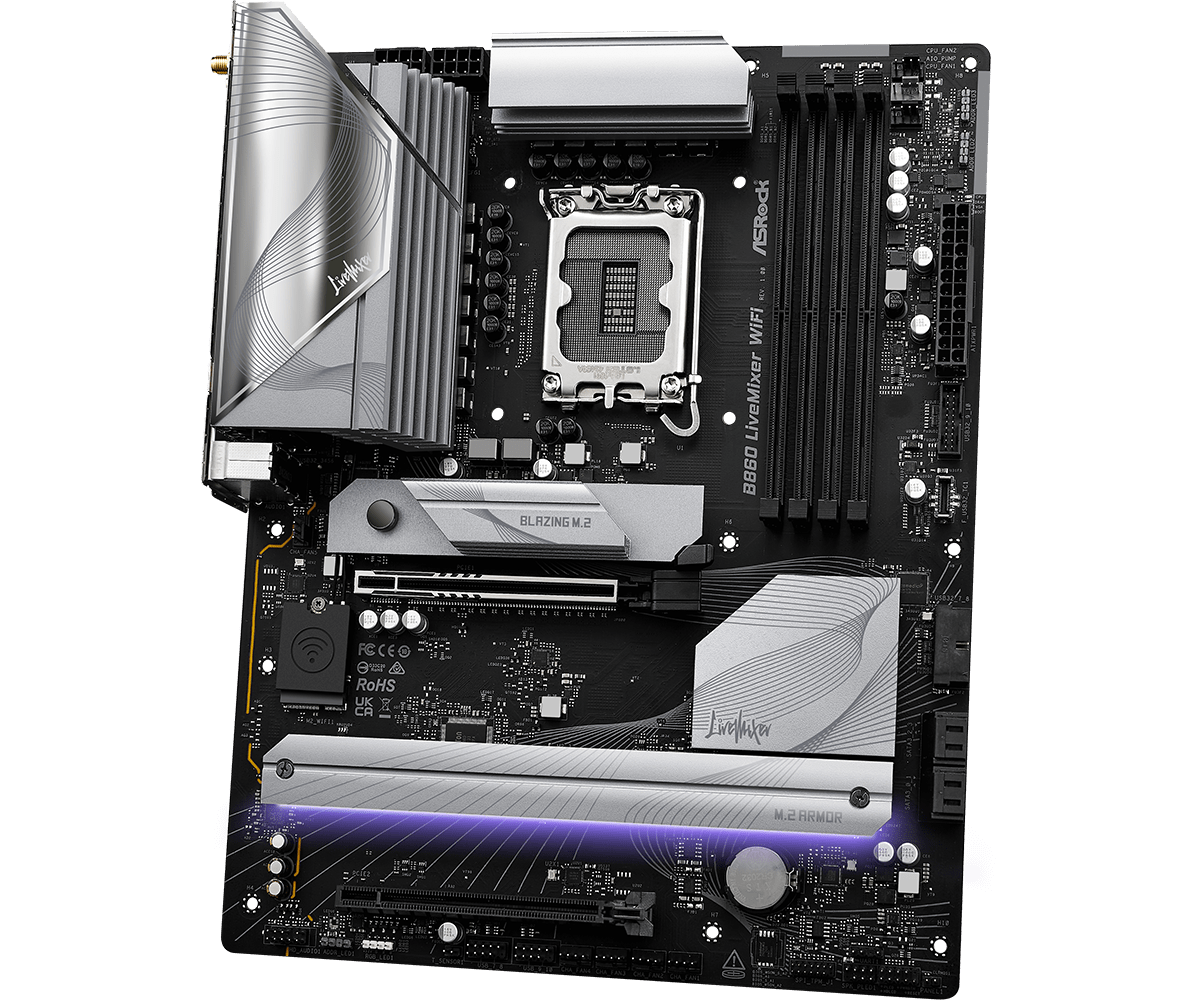 Материнская плата ASRock B860 LIVEMIXER WIFI LGA1851 4xDDR5 4xSATA 3xM.2 1xHDMI 1xThund4 Wifi ATX