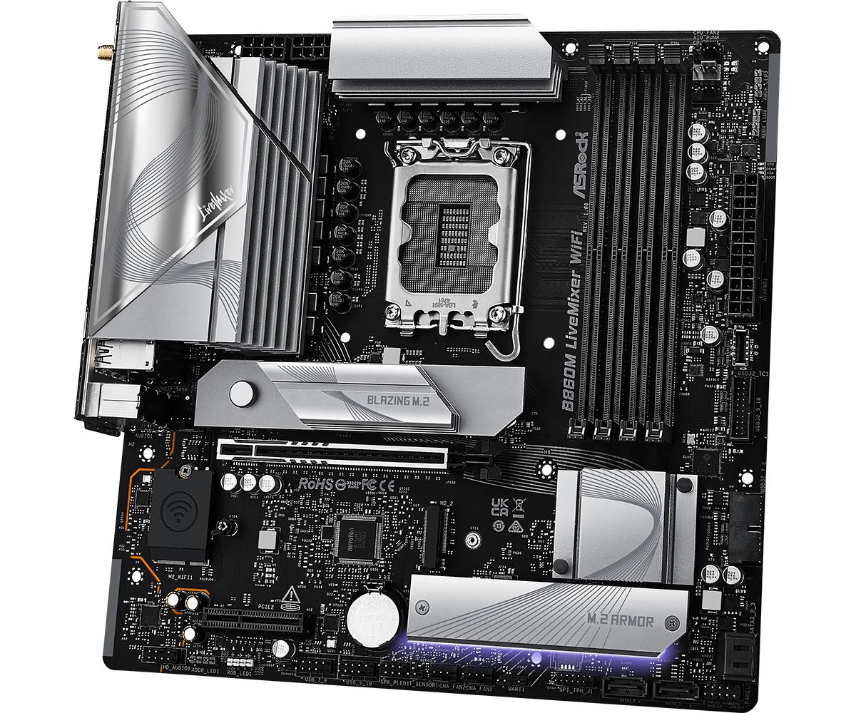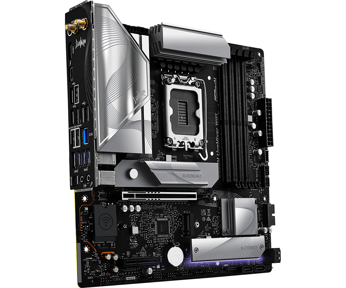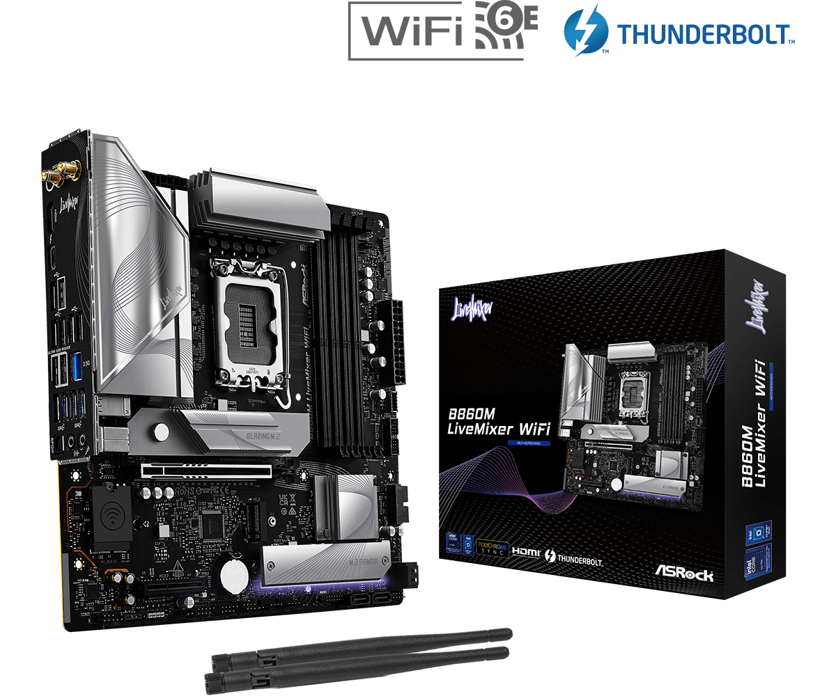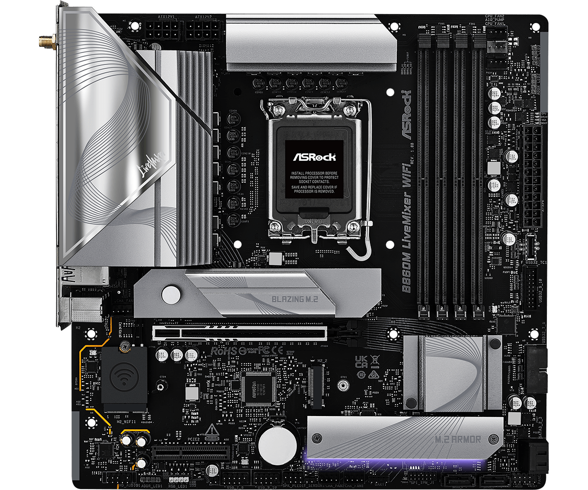 Материнская плата ASRock B860M LIVEMIXER WIFI LGA1851 4xDDR5 4xSATA 3xM.2 1xHDMI 1xThund4 WiFi mATX