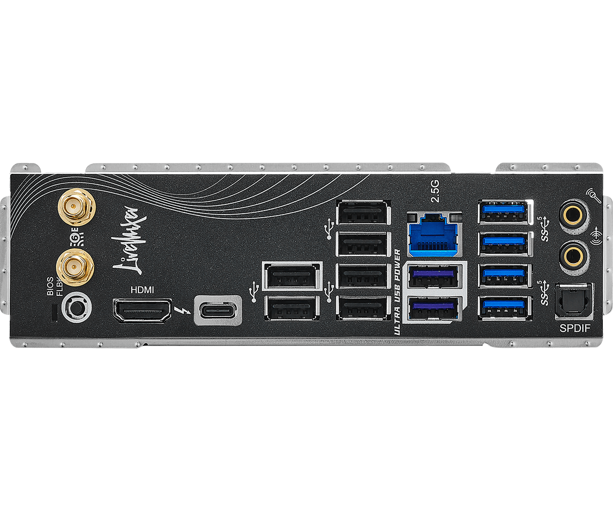PRODUCT BRIEF: Поддерживает процессоры Intel® Core™ 12-го и 13-го поколений 10+1+1 Phase Power Design, Dr.MOS for VCore+GT 4 x DDR4 DIMMs, supports до 5333+(OC) 1 PCIe 4.0 x16, 1 PCIe 3.0 x16, 1 PCIe 3.0 x1, 1 M.2 Key-E для поддержки WiFi Устройство графического вывода данных: 1 HDMI 7.1-канальный HD-кодек (Realtek ALC897 Audio Codec), Nahimic Audio 1 Hyper M.2 (PCIe Gen4x4), 1 Hyper M.2 (PCIe Gen4x4 & SATA3), 4 SATA3 1 USB 3.2 Gen2 Type-C (задних), 1 USB 3.2 Gen2 Type-A (задних), 1 USB 3.2 Gen1 Type-C (передних), 6 USB 3.2 Gen1 Type-A (4 Rear, 2 передних), 6 USB 2.0 (2 Rear, 4 Front) Intel® 1G LAN