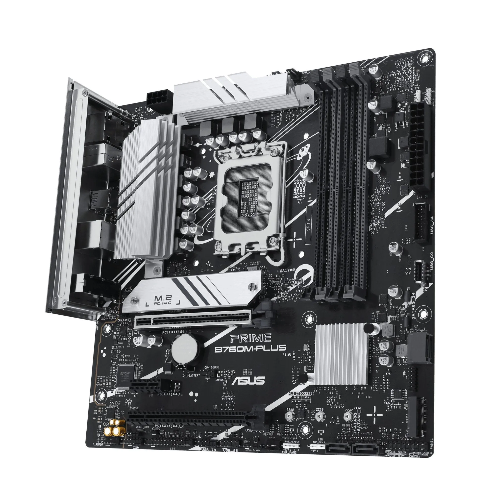 Intel® B760 LGA 1700 mATX motherboard with PCIe 4.0, two PCIe 4.0 M.2 slots, DDR5, Realtek 2.5Gb Ethernet, VGA, HDMI™, SATA 6 Gbps, front USB 3.2 Gen 1, Aura Sync