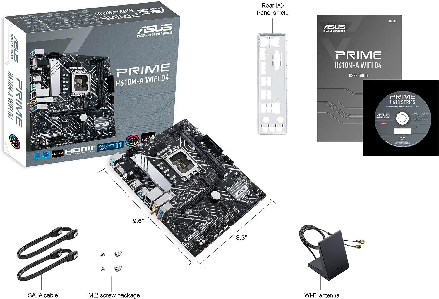 Материнская плата ASUS PRIME H610M-A WIFI D4, LGA1700 2xDDR4 4xSATA3 2xM.2 1xD-Sub 1xHDMI 1xDP mATX