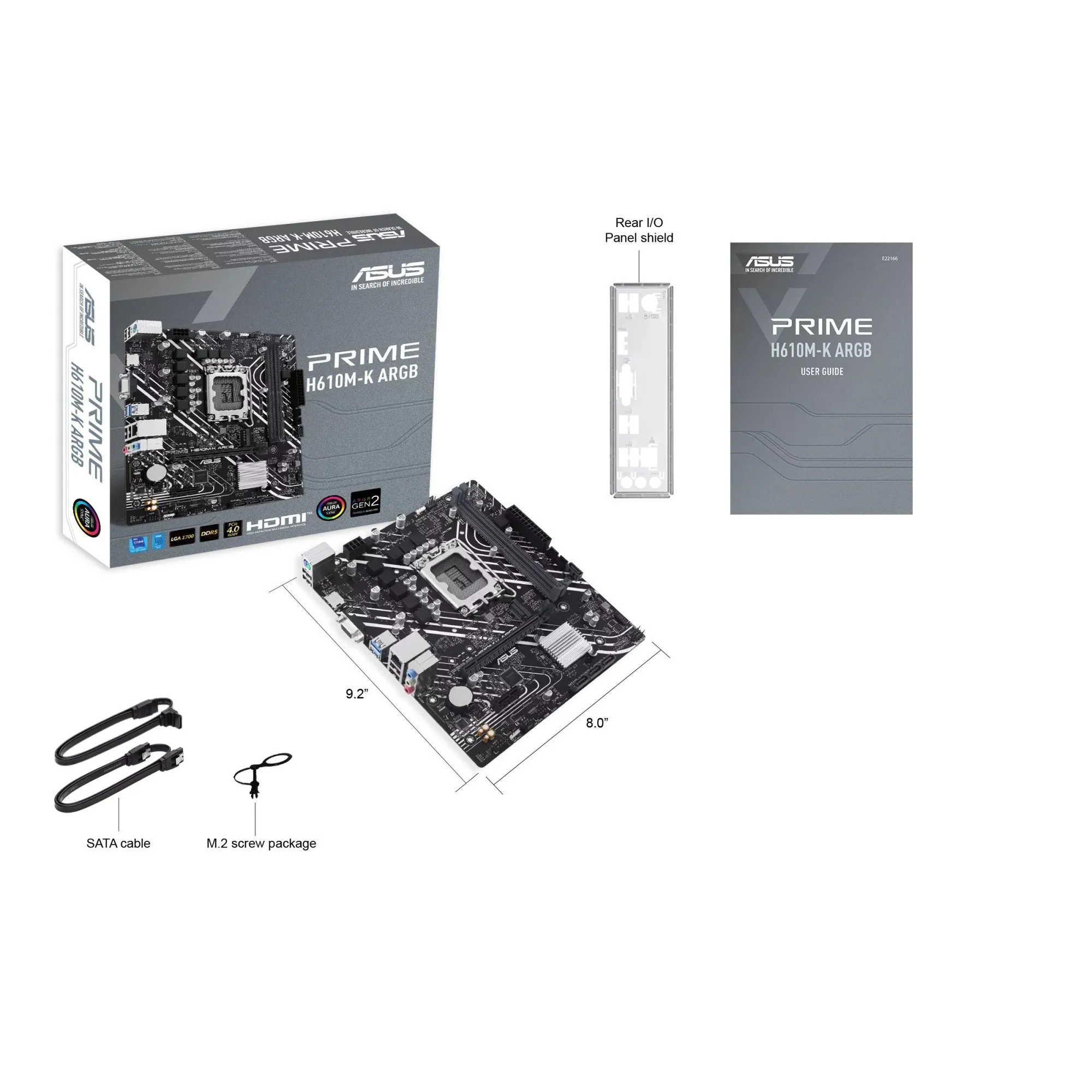 Материнская плата ASUS PRIME H610M-K ARGB, LGA1700 2xDDR5 4xSATA3 M.2 VGA HDMI mATX