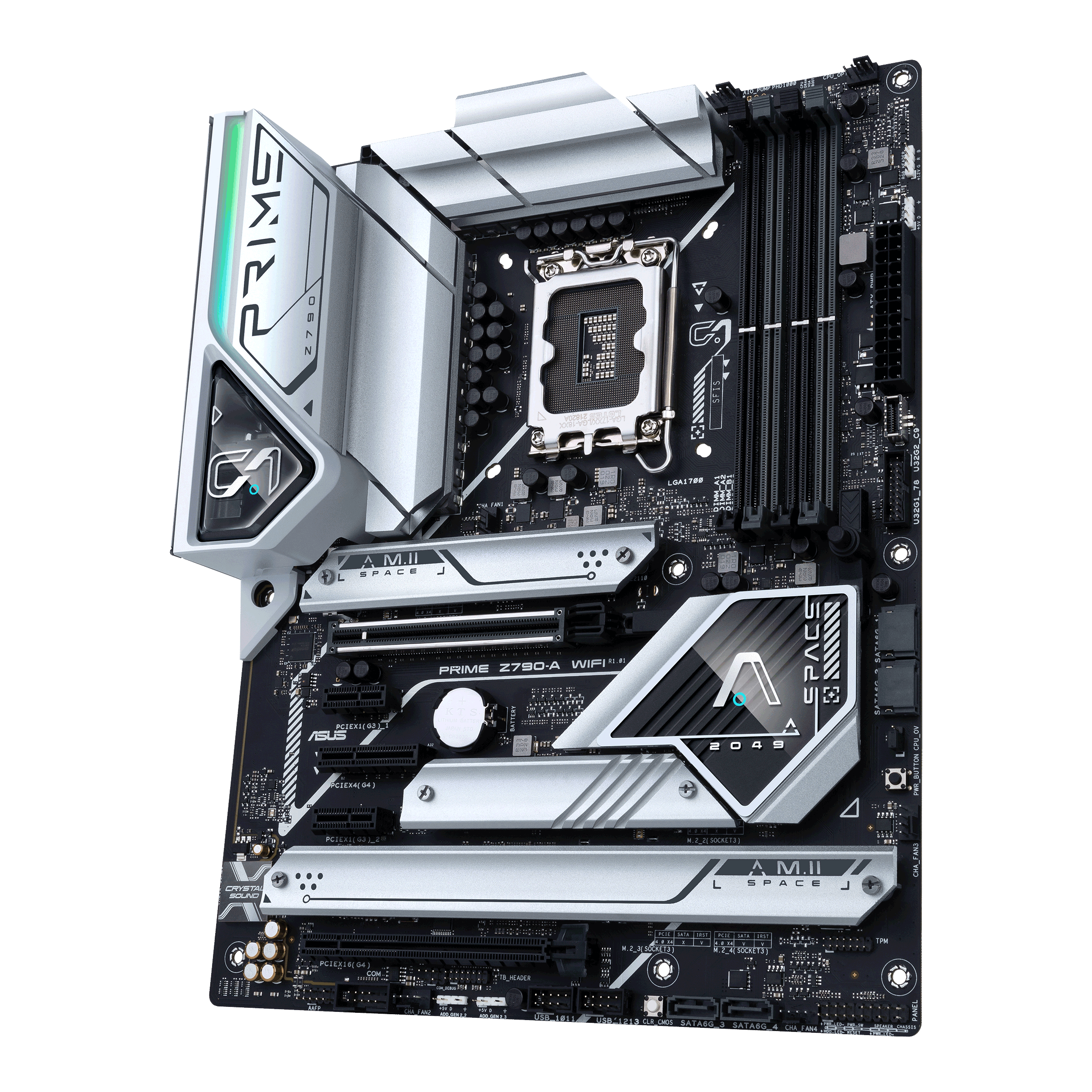 Материнская плата ASUS PRIME Z790-A WIFI обладает высокопроизводительными характеристиками для сборки профессиональной рабочей станции или игрового компьютера. Она выделяется массивными радиаторами для эффективного отвода тепла и многоцветным освещением ASUS Aura Sync с функцией синхронизации. Плата полноразмерного форм-фактора совместима с процессорами Intel Core 13 поколения в исполнении LGA 1700. Для подключения комплектующих предусмотрены 4 слота под установку ОЗУ стандарта DDR5, слоты расширения PCI-E x16, 4 разъема M.2 и 4 порта SATA. В ASUS PRIME Z790-A реализован сетевой коннектор 2.5 Гбит/с для стабильного соединения с Интернетом. Возможности беспроводной синхронизации представлены технологиями Wi-Fi и Bluetooth.