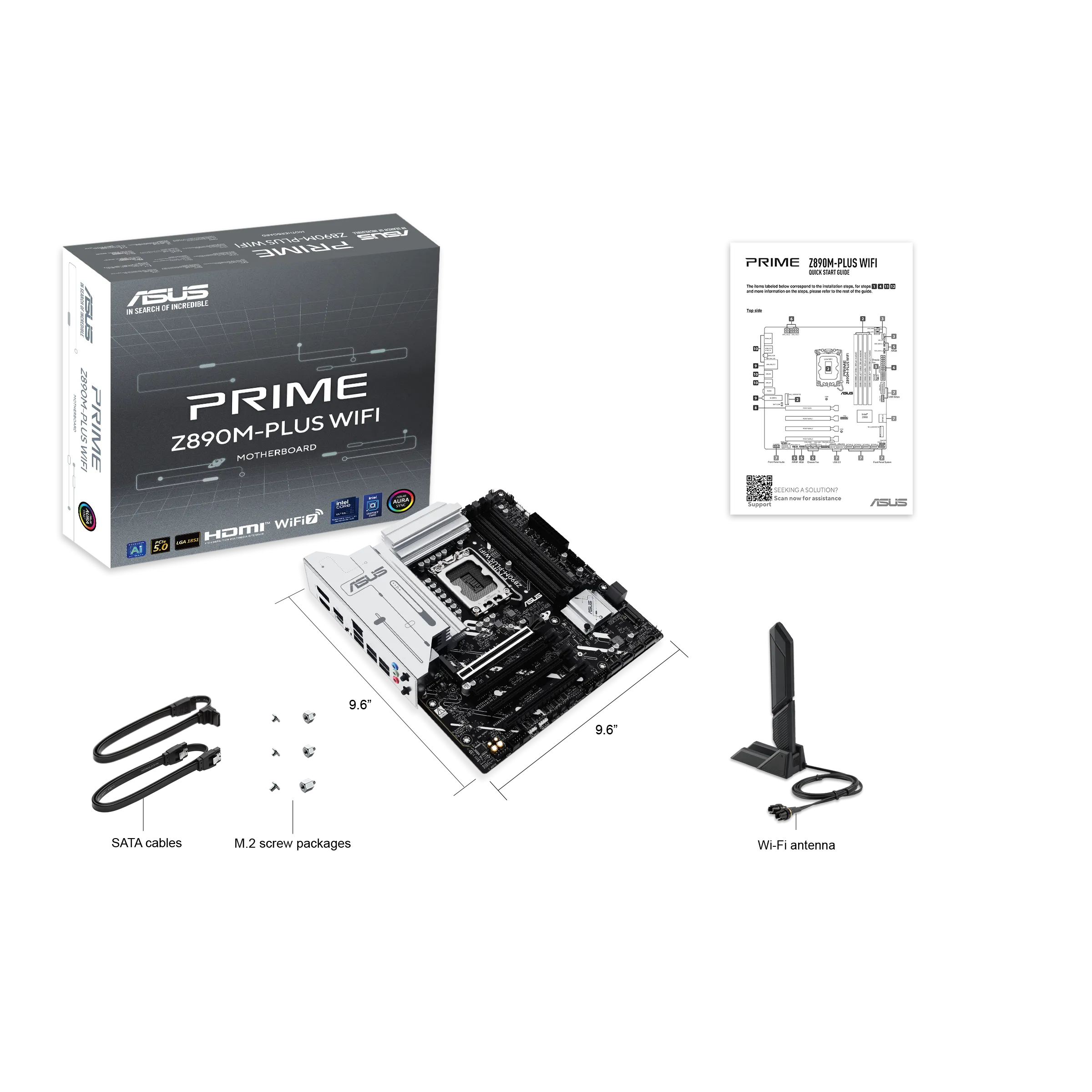 Сист.плата ASUS PRIME Z890M-PLUS WIFI, Z890, 1851, 4xDDR5, PCI-E x16, M2, SATA, DP, HDMI, USB-C 20GBps, WIFI7, BOX