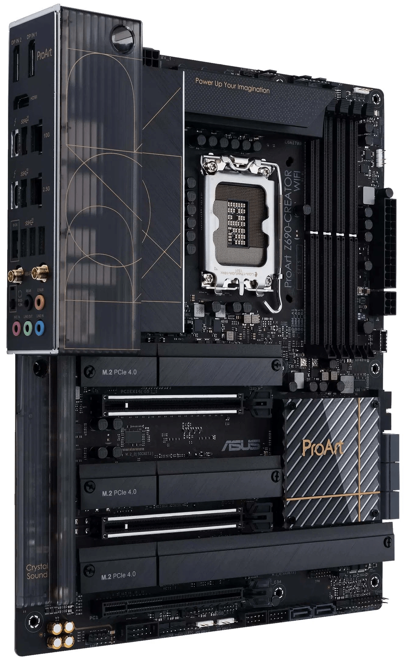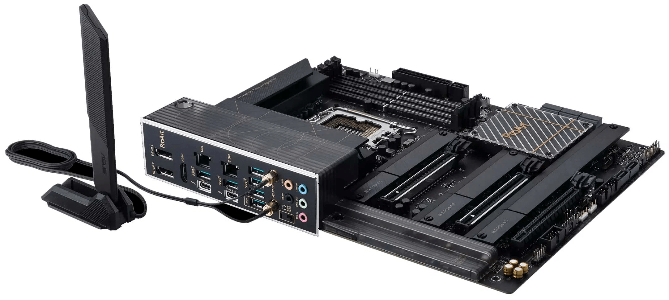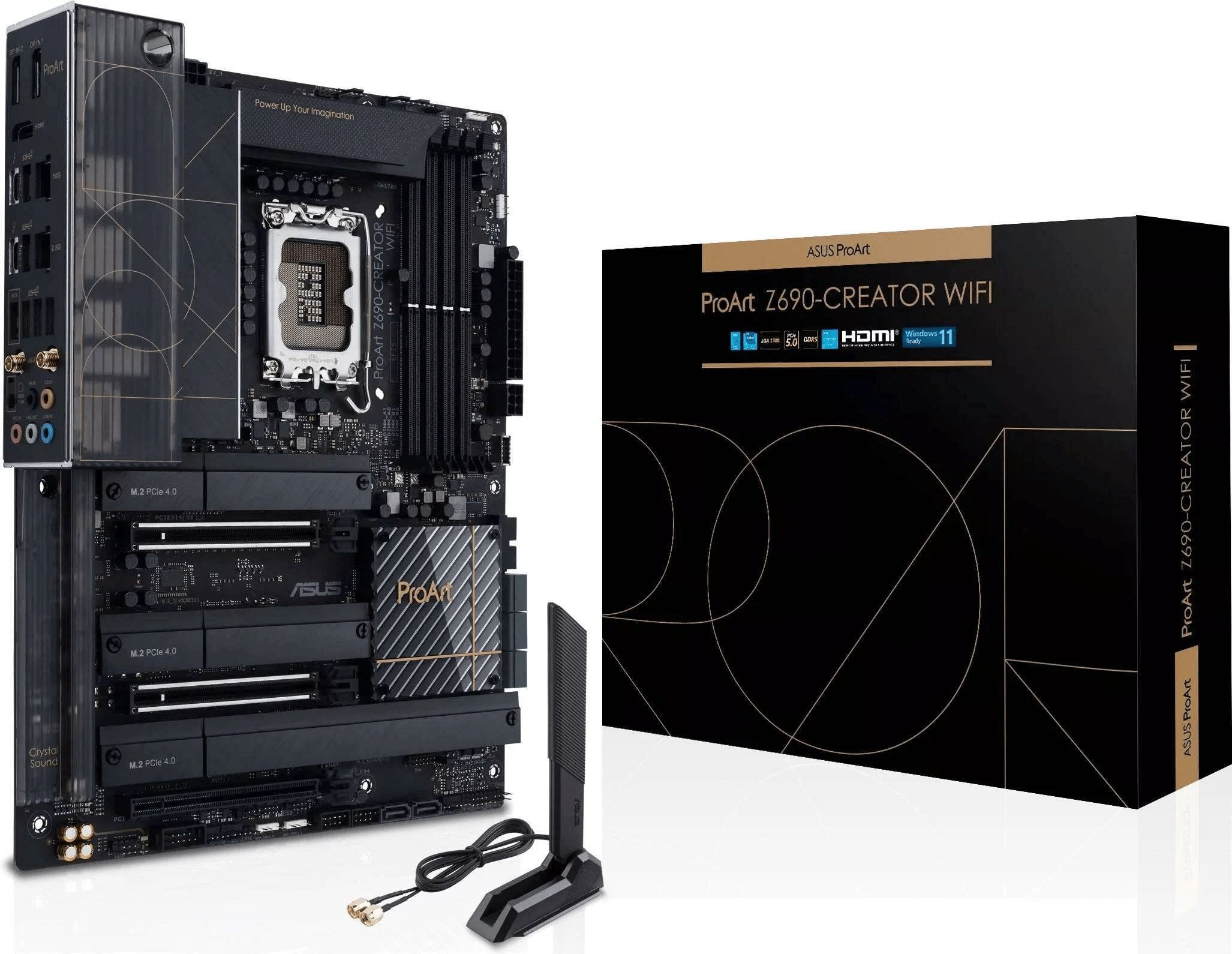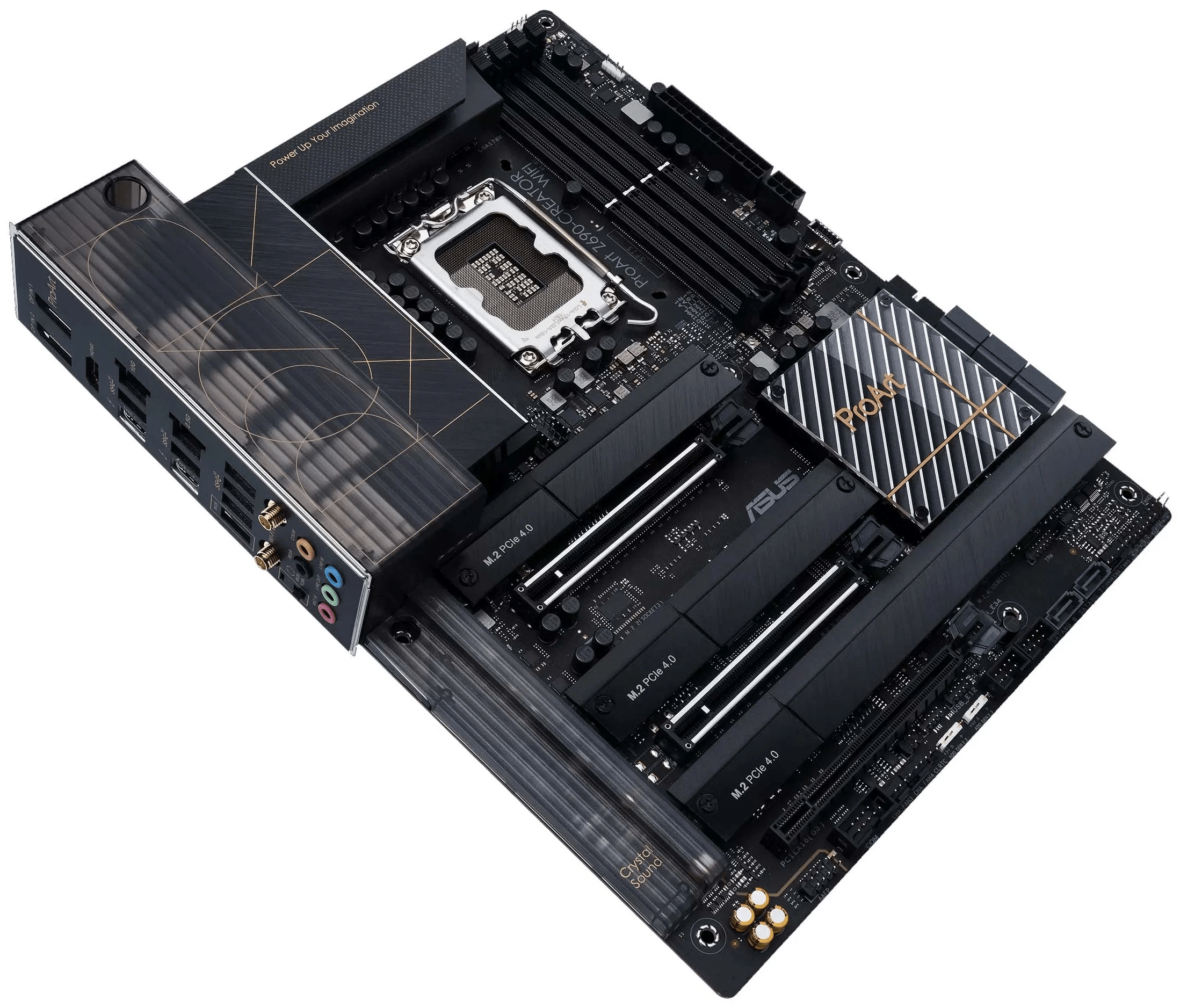 Материнская плата ProArt Z790-Creator WiFi станет отличным фундаментом для компьютера, предназначенного для запуска профессиональных приложений. Поддержка процессоров Intel Core 13-го и 12-го поколений, мощная система питания (16+1 силовой модуль), стандарты DDR5 и PCIe 5.0, скоростные интерфейсы (Thunderbolt 4 / USB4, 10G и 2.5G Ethernet, Wi-Fi 6E) – она предлагает все, что необходимо для продуктивной работы. Устройство выделяется элегантным, строгим дизайном, выполненном в черных тонах с золотистыми акцентами.