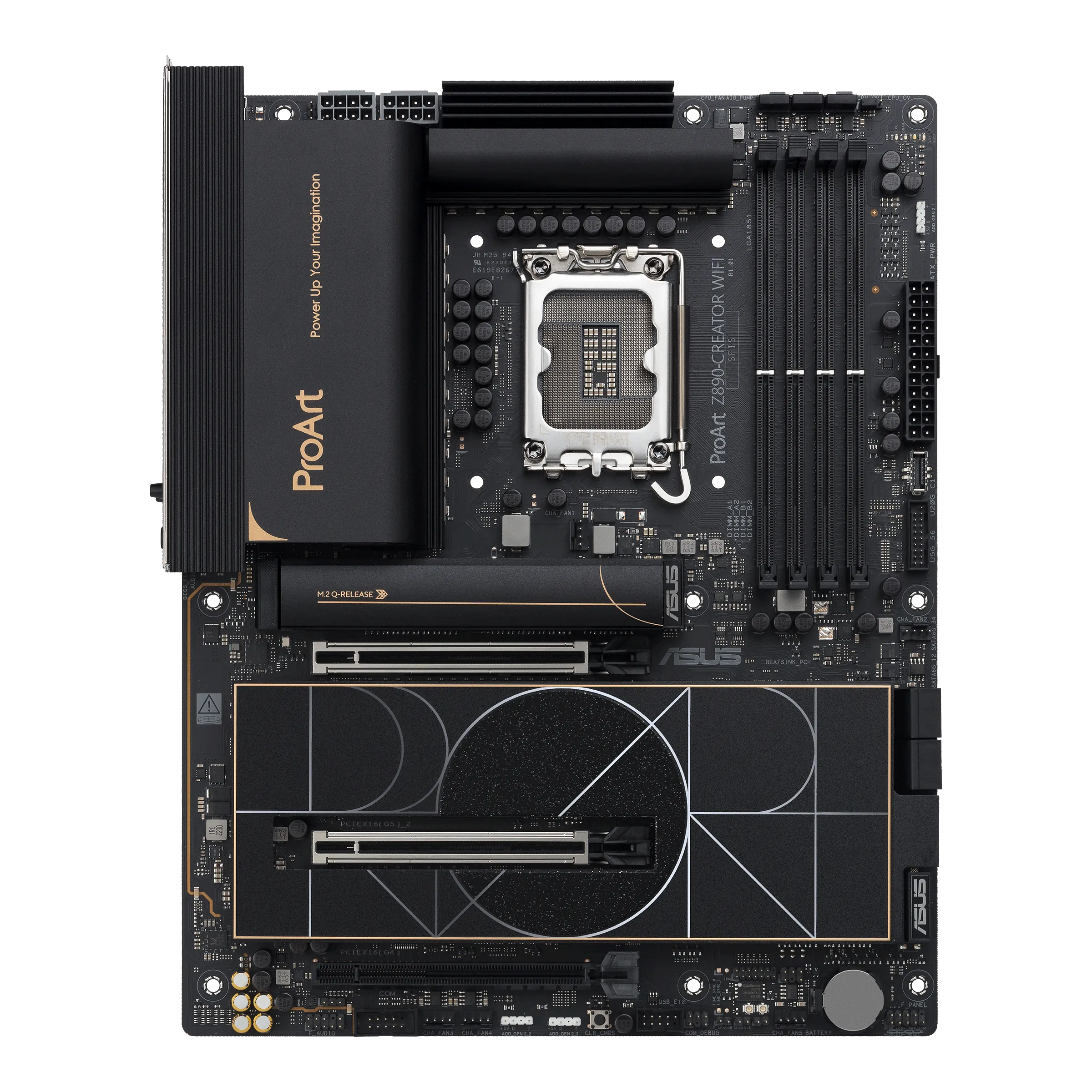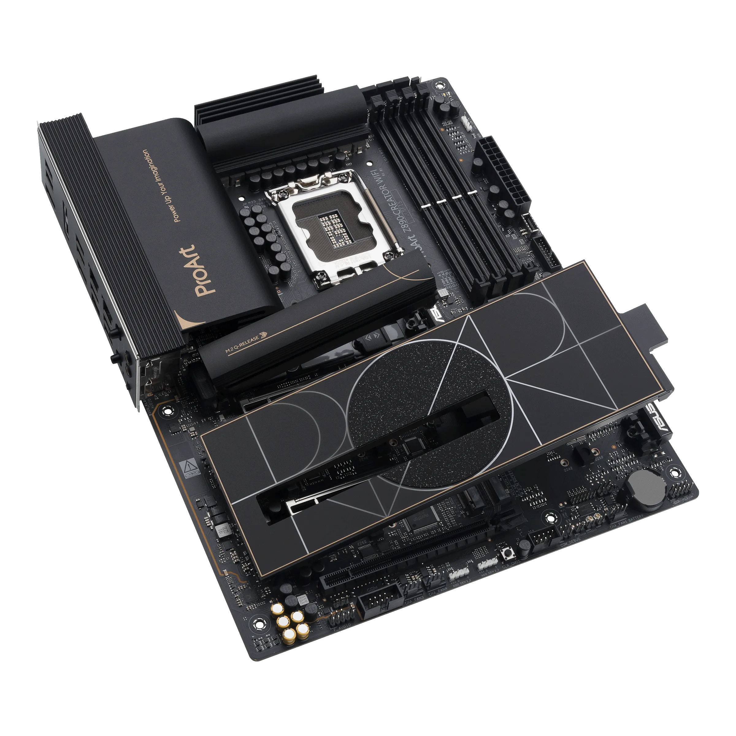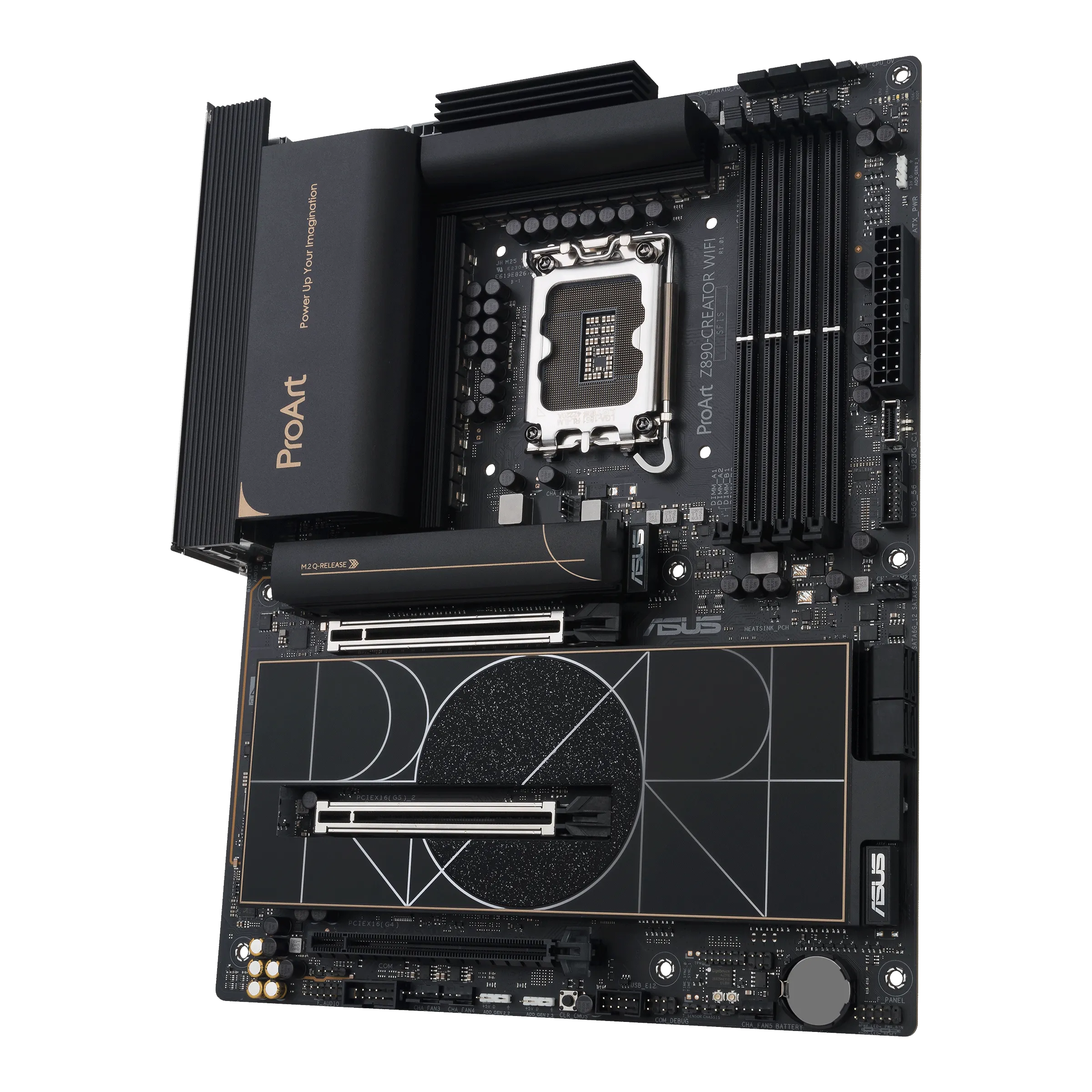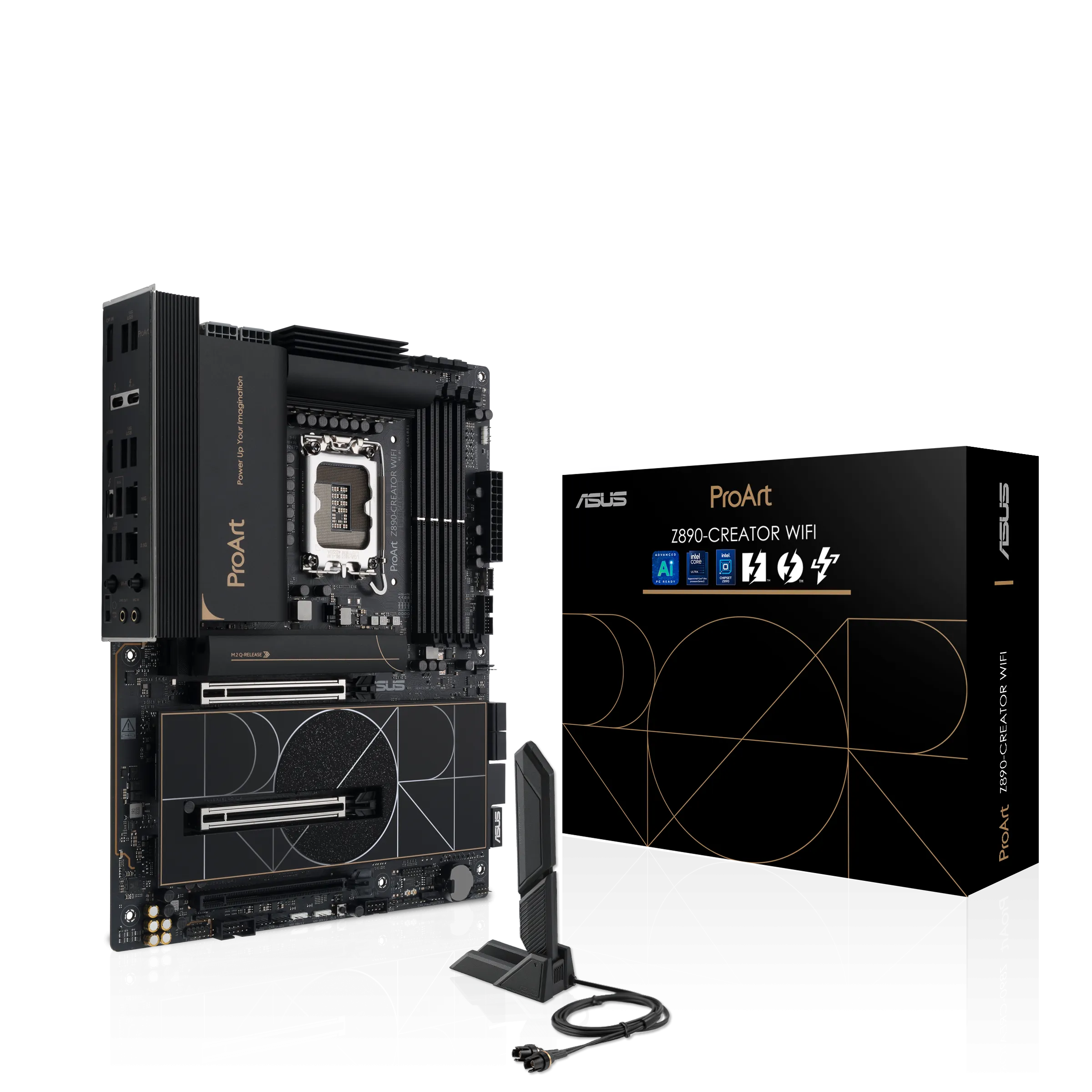 ProArt Z890-CREATOR WIFI - расширяет возможности творцов всех уровней, максимально увеличивая производительность новейших процессоров Intel® Core™ Ultra (Series 2) с 16+1+2+2 групповыми каскадами питания, слотами DDR5, PCIe® 5.0 и Lightning-разъемом. быстрое подключение, включая два порта Thunderbolt™ 5, Ethernet 10G и 2,5G, а также Wi-Fi 7. Эта материнская плата воплощает профессиональное, элегантное и точное видение для создателей контента всех видов, ее стиль подчеркивается тон в тон слоями черного цвета с элементами металлического золота. Тонко спроектированная крышка ввода-вывода придает изящный и изысканный вид, скрывая внутри разъемы премиум-класса.