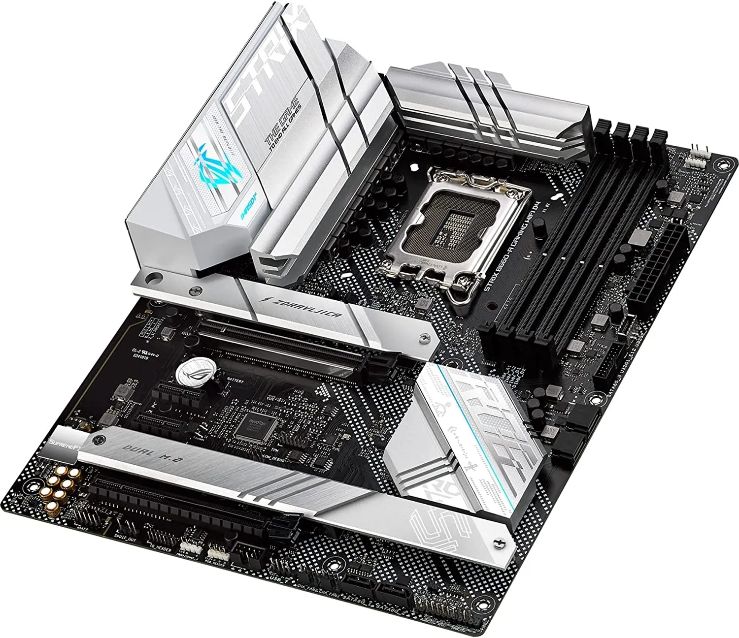 Материнские платы серии TUF Gaming – это высоконадежные устройства, созданные и протестированные для работы в особо сложных условиях. Благодаря отборной элементной базе, усиленной системе питания и продуманному охлаждению они обеспечат максимальную стабильность компьютера во время марафонских игровых сессий. Дизайн модели TUF GAMING H770-PRO WIFI – с рельефной именной табличкой и геометрическим узором – отражает строгий лаконизм и функциональную практичность всей серии.