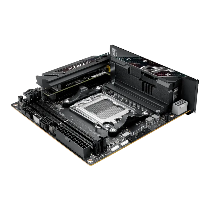 ASUS ROG STRIX B850-I GAMING WIFI — это премиальная материнская плата для компактных сборок, где важны производительность и современные технологии. Она идеально подходит для геймеров и энтузиастов, желающих использовать новейшие процессоры AMD Ryzen и видеокарты с PCIe 5.0, такие как NVIDIA RTX 50-й серии. Несмотря на небольшой размер, плата предлагает мощную систему питания, поддержку быстрой DDR5-памяти и два слота M.2 с PCIe 5.0 для скоростных SSD. Wi-Fi 7 и 2.5G Ethernet обеспечивают ультрабыстрое сетевое подключение, а продвинутая аудиосистема SupremeFX создает immersive-звучание. Дизайн выполнен в черном цвете с элементами RGB-подсветки, что делает её визуально привлекательной для открытых сборок. Компактность не идет в ущерб функциональности: плата оснащена всем необходимым для разгона, игр и работы с ресурсоемкими задачами, включая ИИ-приложения. Это отличный выбор для тех, кто ищет баланс между мощностью, стилем и размером.