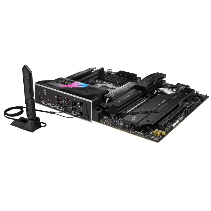 ROG Strix Z890-E Gaming WiFi с передовой конструкцией и функциями искусственного интеллекта обеспечивает высочайшую производительность. Оснащенная интерфейсами Thunderbolt™ 4, WiFi 7, высокоскоростными слотами DDR5 и семью слотами M.2, она обеспечивает исключительные возможности подключения и скорость, что делает ее идеальной для элитных игр и передовых приложений для ПК с искусственным интеллектом.